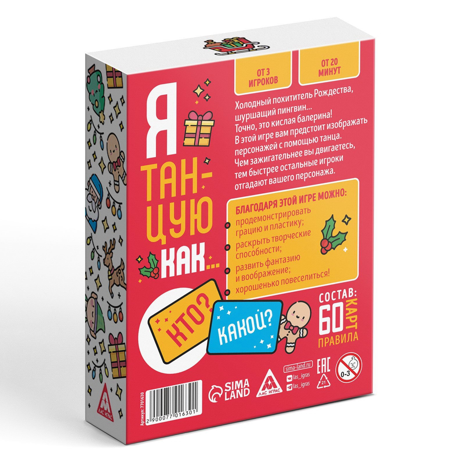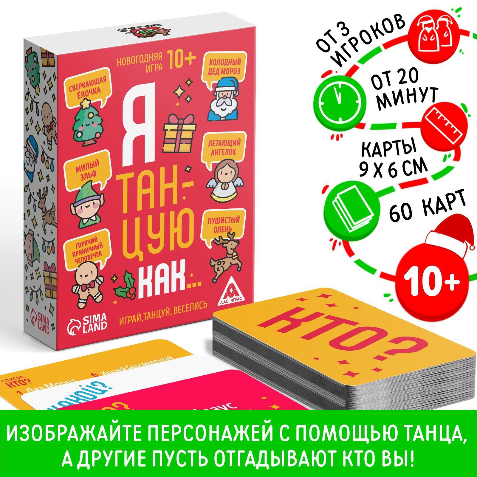 Новогодняя настольная игра "Новый год: Я танцую как…", 60 карт, 10+, 9.5x3.3x12.5 см., ЛАС ИГРАС, Китай
