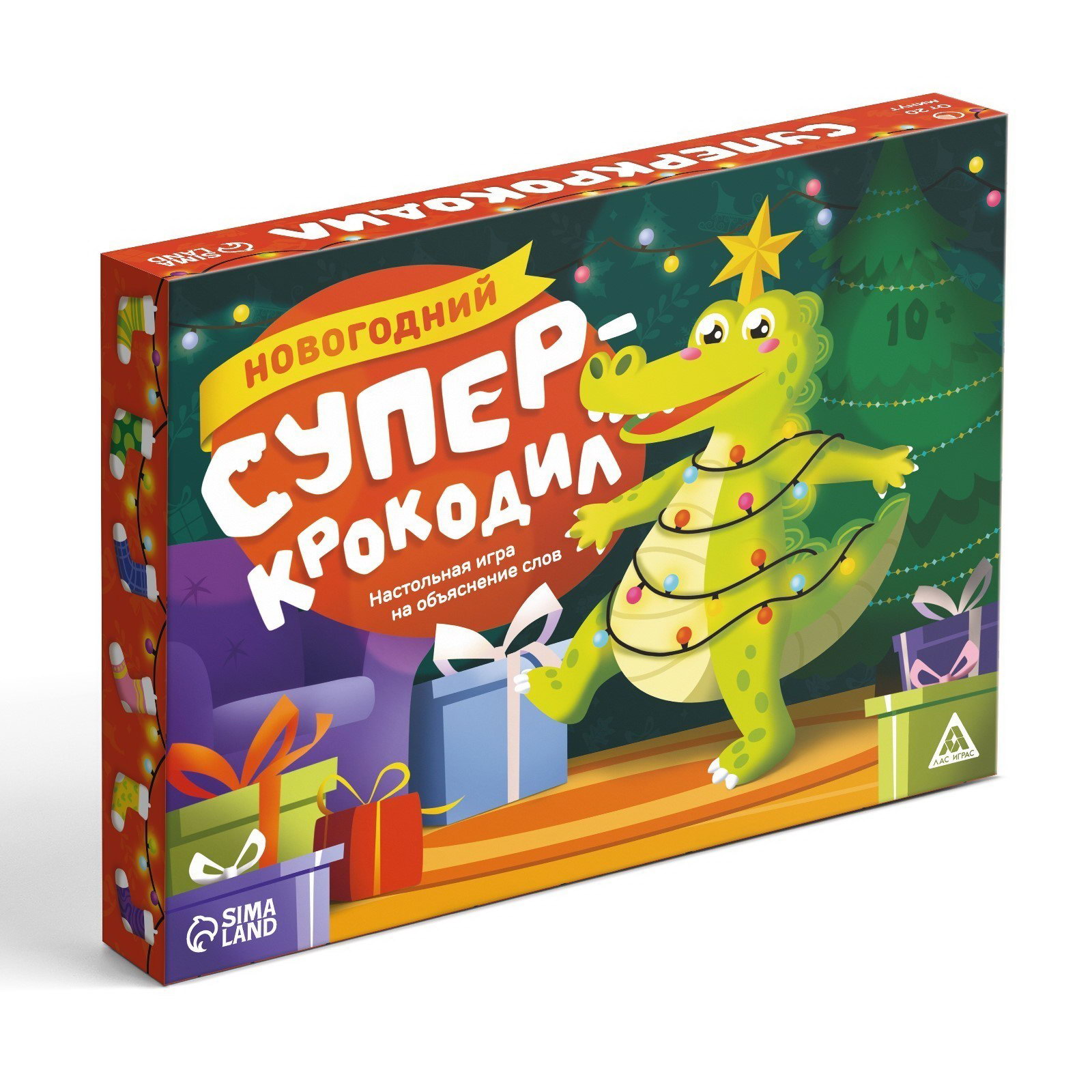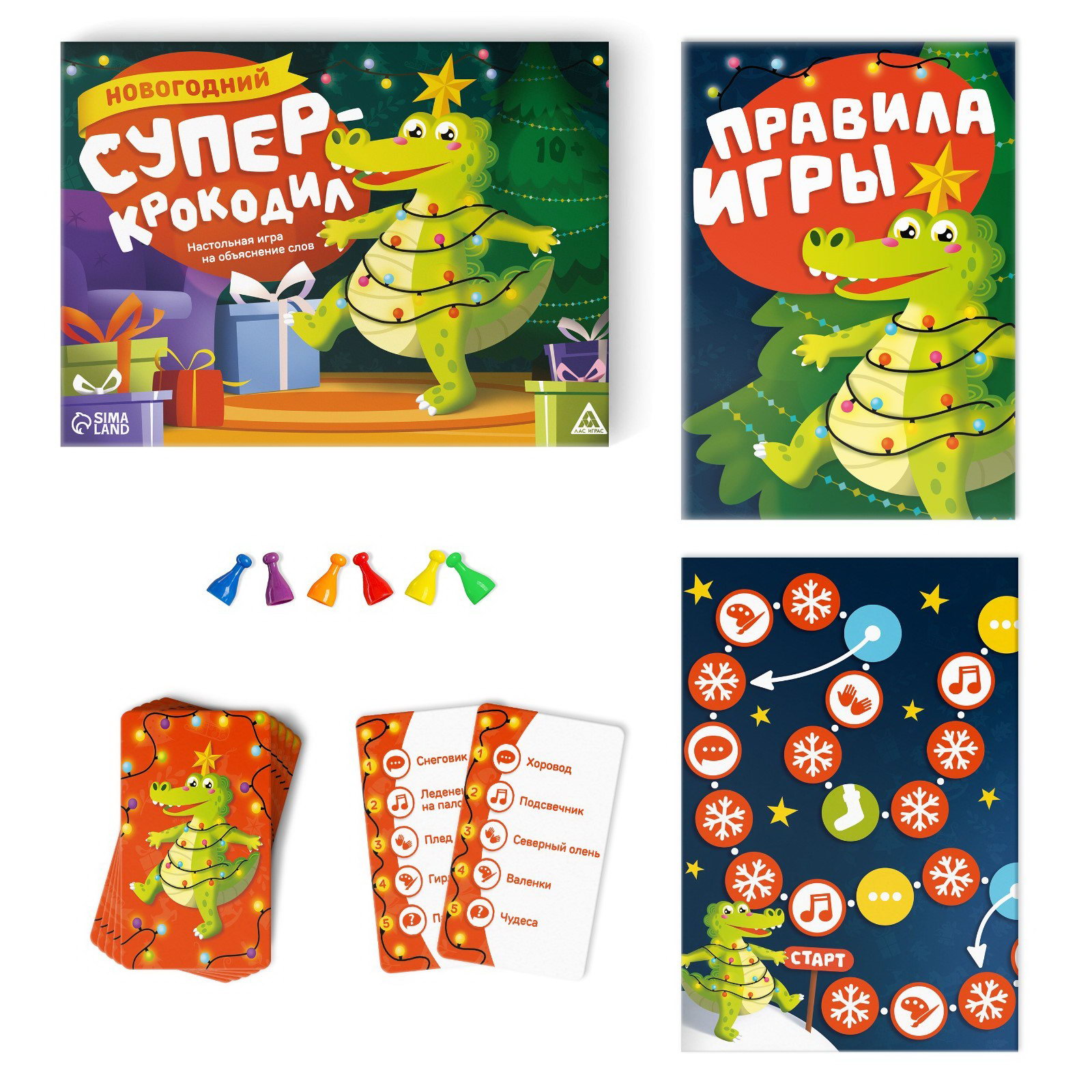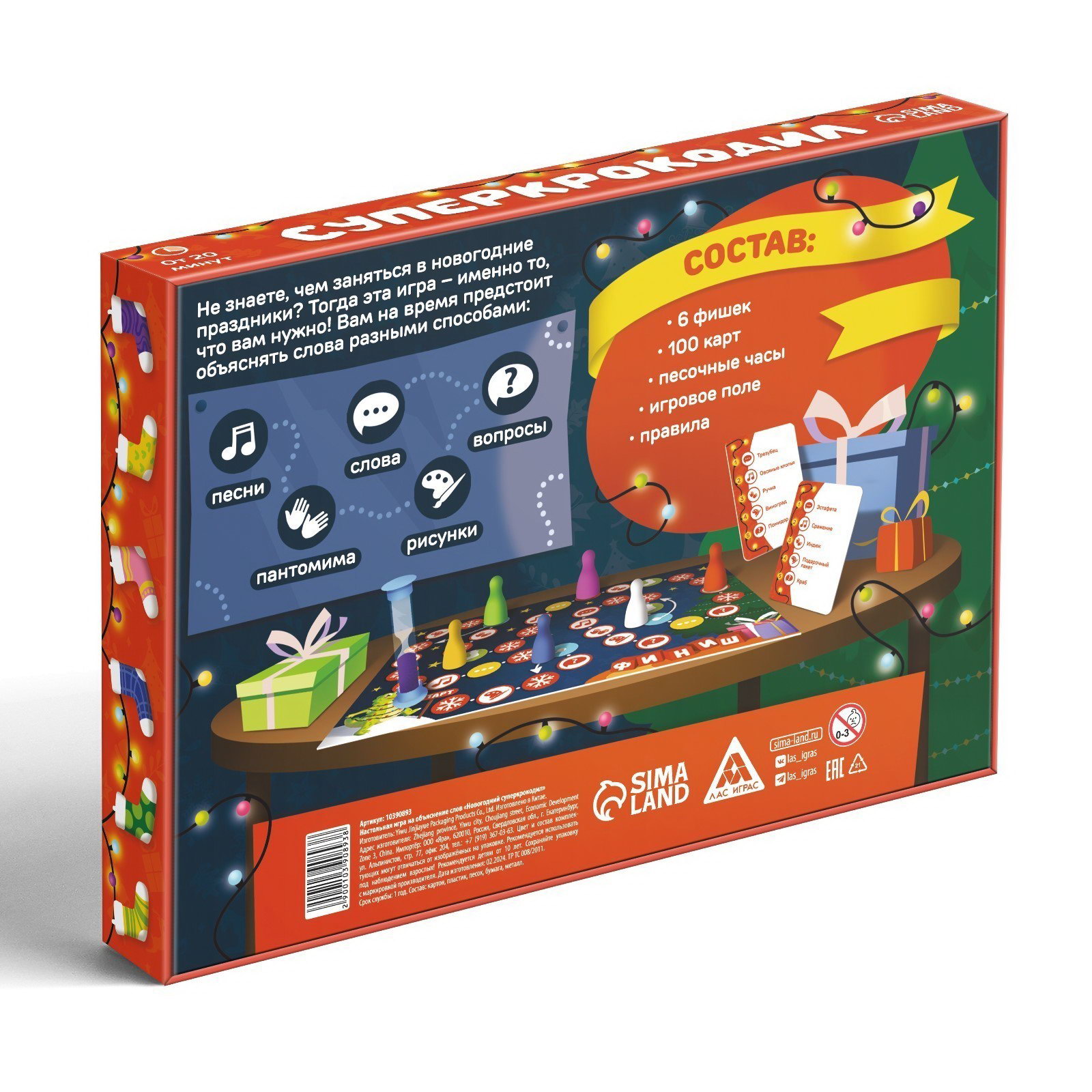 Новогодняя настольная игра "Новый год: Супер крокодил", 100 карт, 10+, 23x3x17 см., ЛАС ИГРАС, Китай