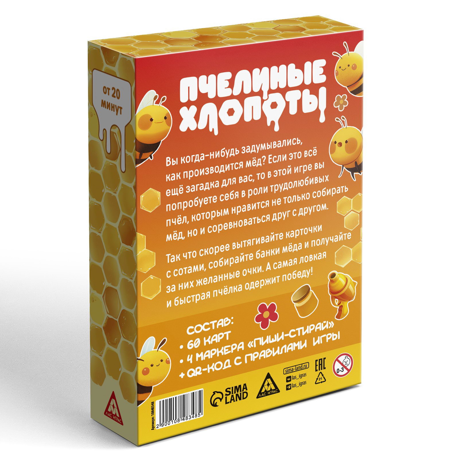 Настольная игра "Пчелиные хлопоты", 60 карт, 8+, 3.3x10.5x15.3 см., ЛАС ИГРАС, Китай