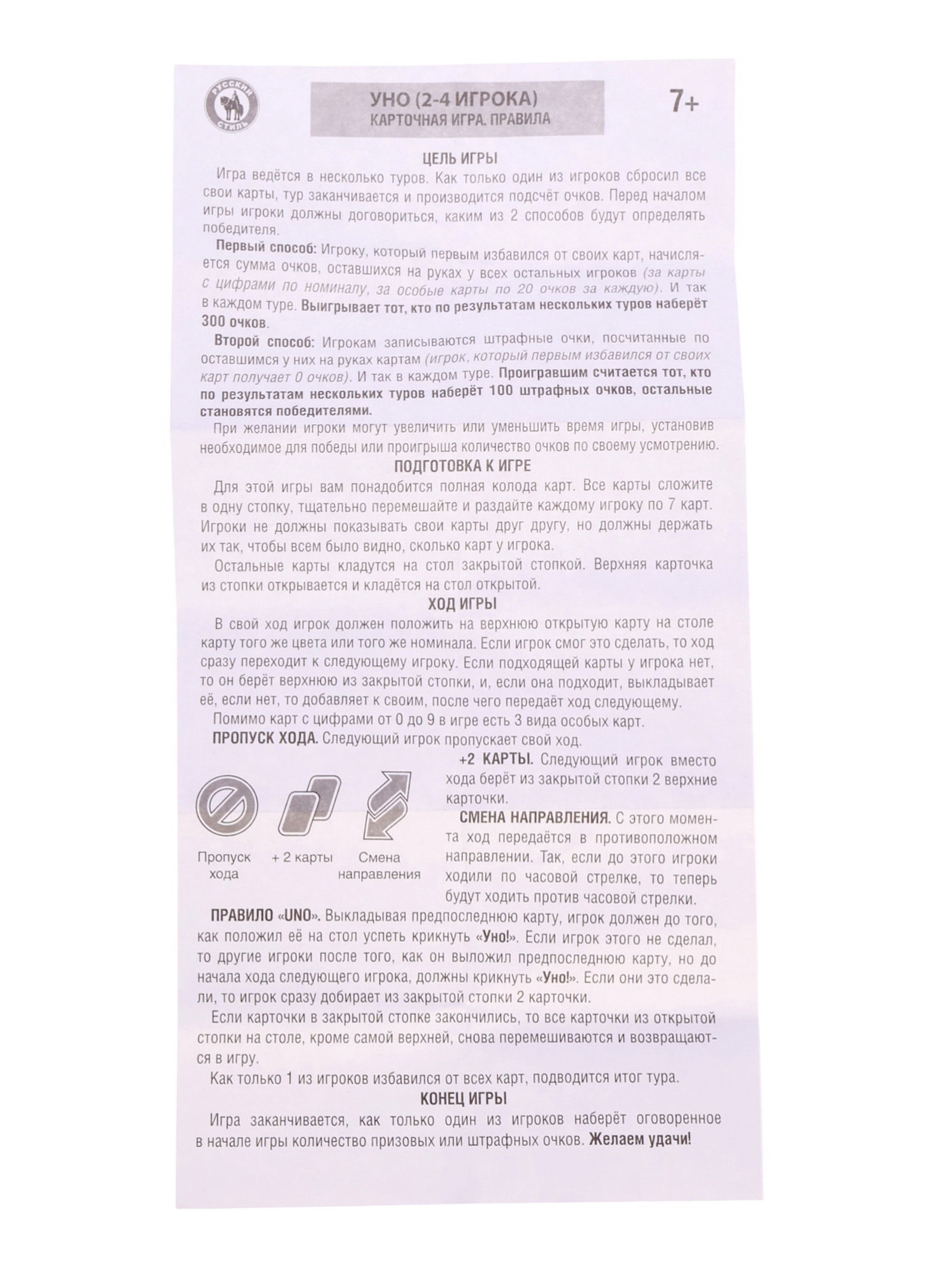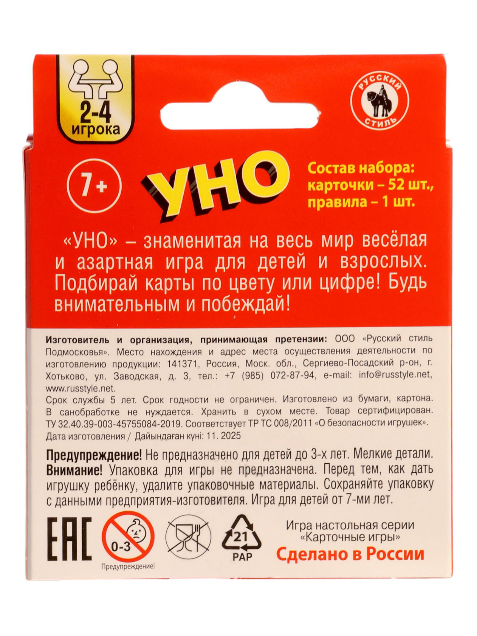 Настольная игра "Уно классическое", 52 карточки, Русский стиль, Россия