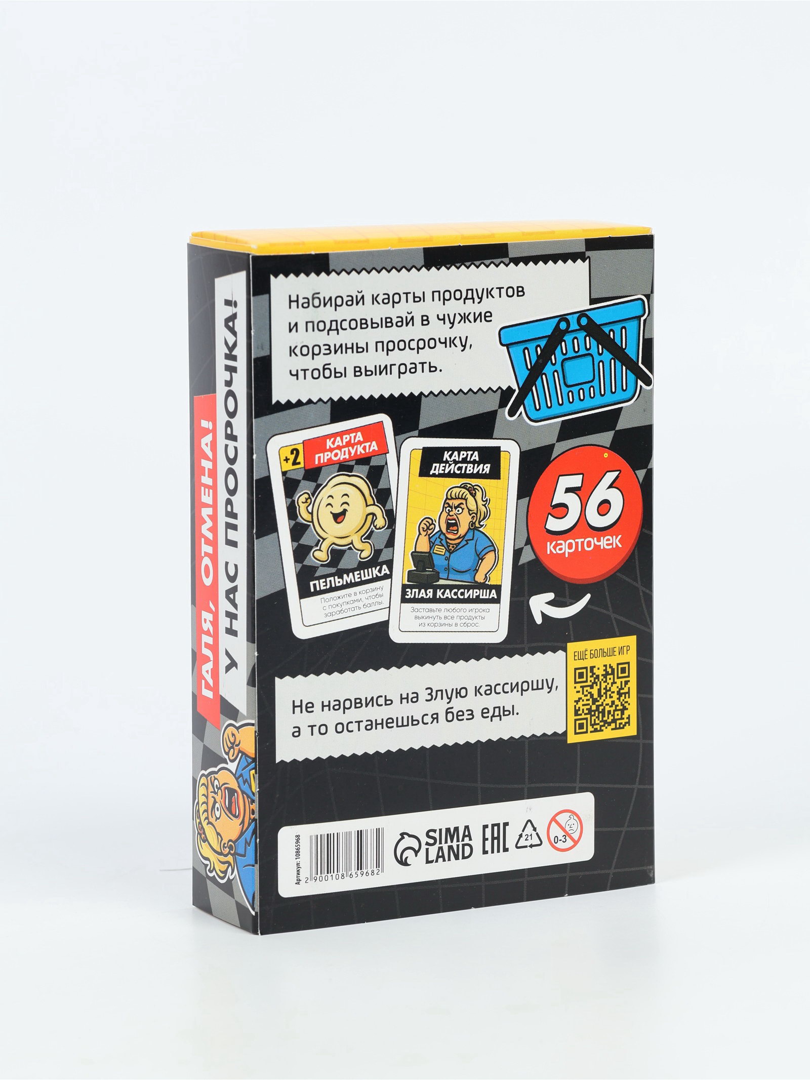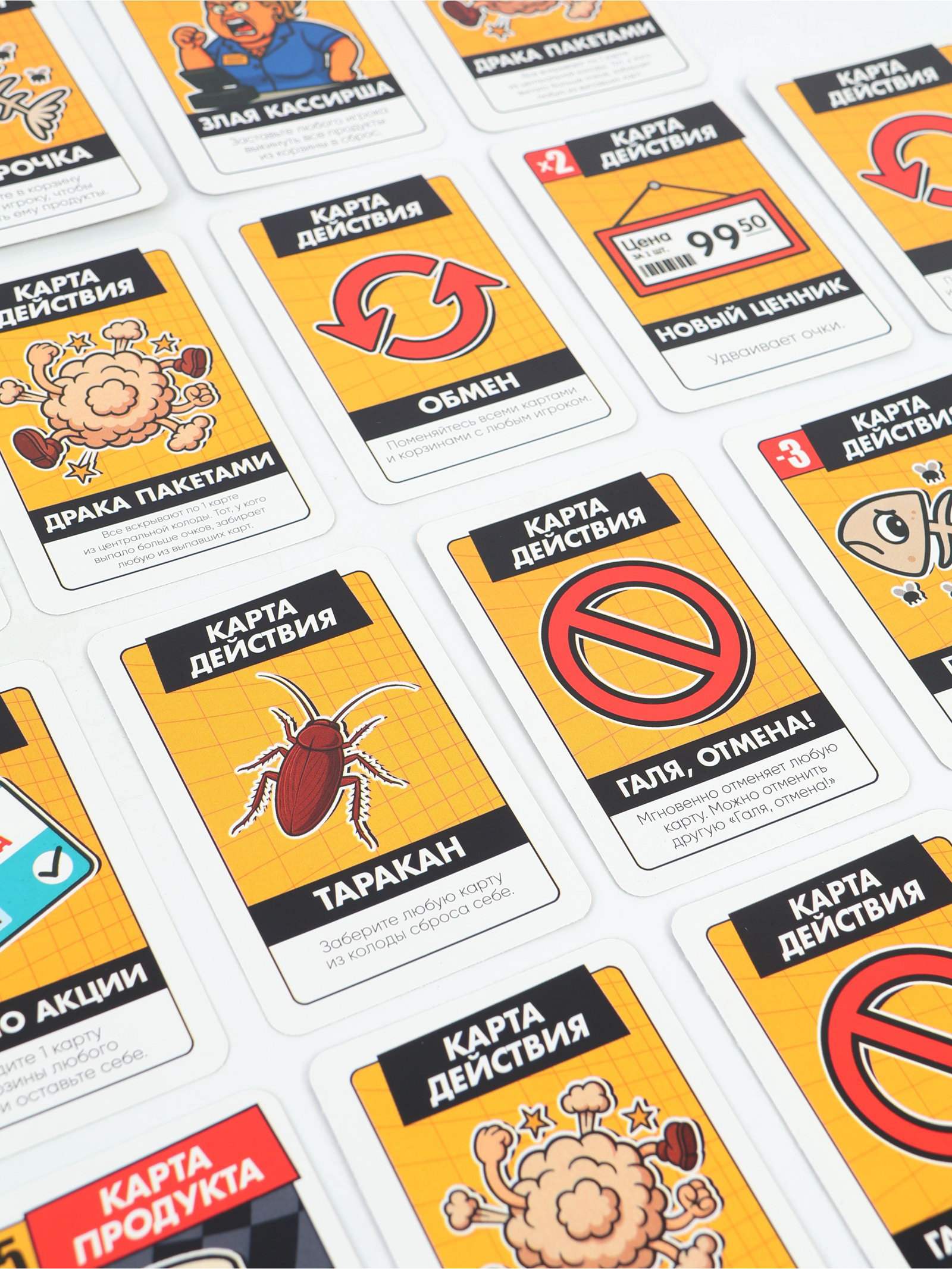 Суть игры: Набирай карты продуктов и подсовывай в чужие корзины просрочку, чтобы выиграть. И не нарвись на злую кассиршу, а то останешься без еды! Успевай заполнить корзину продуктами в настольной игре "Битва за хавчик"! А то Галина уже рядом... | ||
