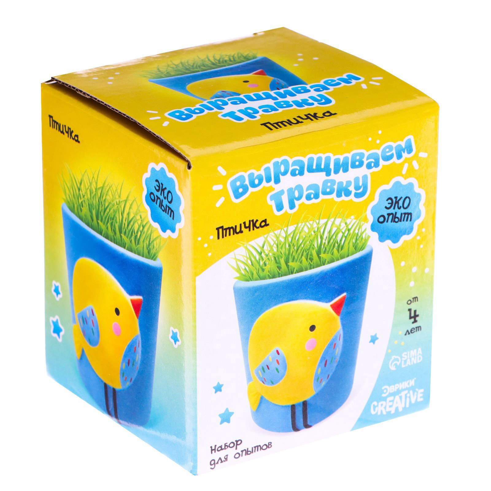 Набор для опытов, для детей "Выращиваем травку", растение в горшочке "Птичка", 7x7x9 см., Эврики, Китай