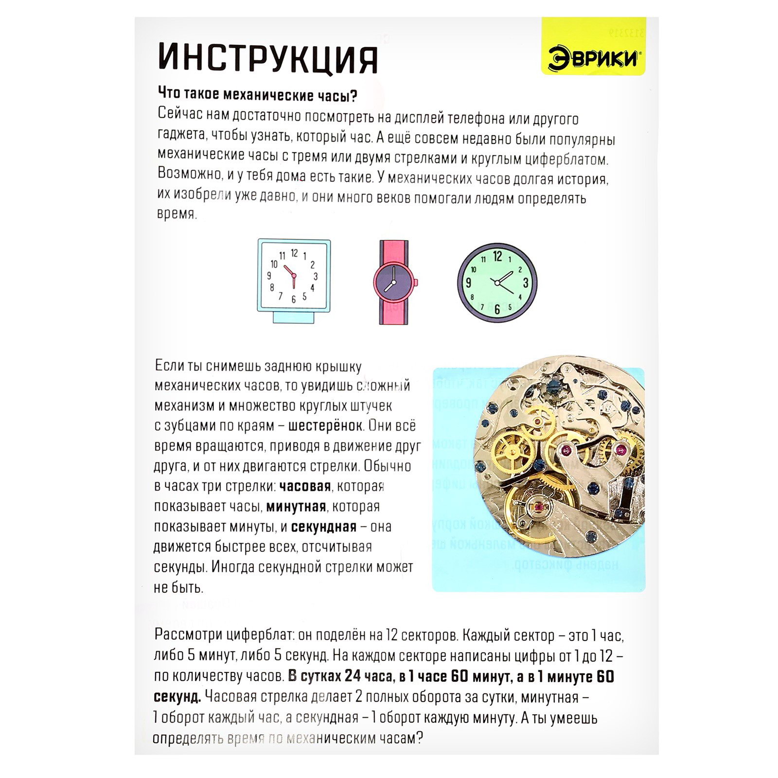 Набор для опытов "Часовой механизм", Эврики, Китай