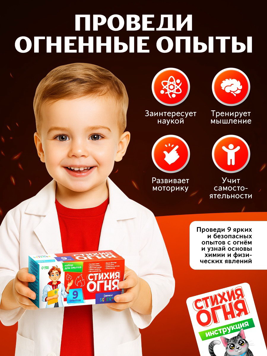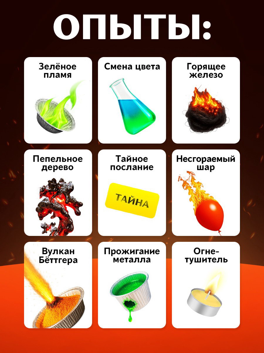 Набор для опытов "Стихия огня", 9 опытов, Эврики, Китай