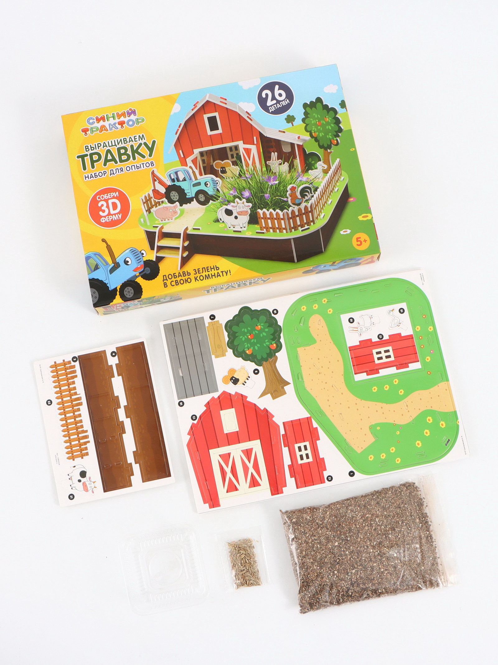 Набор для опытов "Выращиваем травку", 26 деталей, 22x31x3.5 см., Синий трактор, Китай