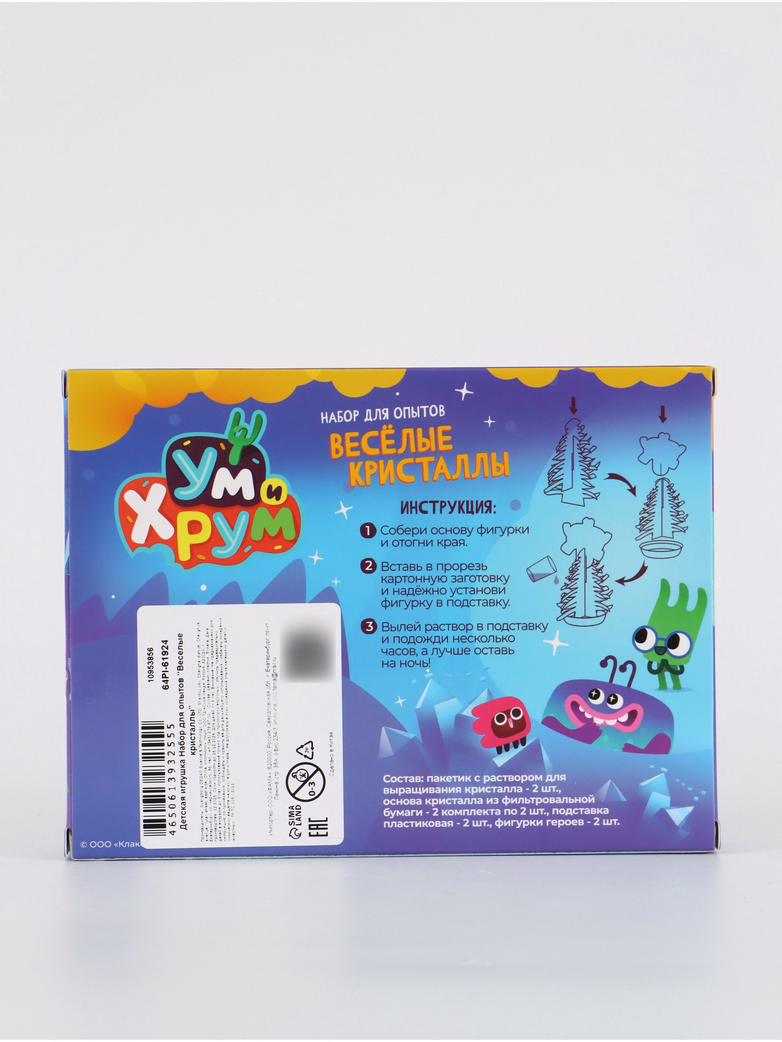УМ И ХРУМ Набор для опытов "Веселые кристаллы", 18x12x2.5 см., Ум и Хрум, Китай