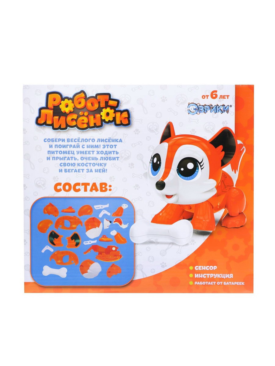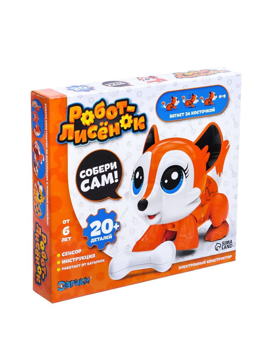 Электронный конструктор "Робот-лисёнок", интерактивный, сенсорный, на батарейках, 20 деталей, 9.5x19.5x11 см., Эврики, Китай