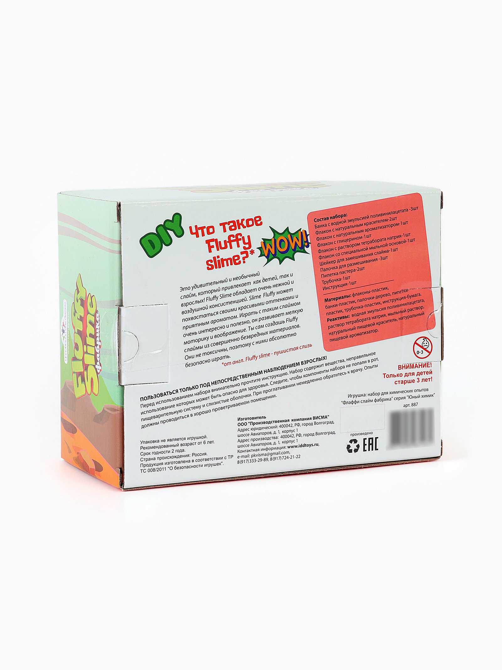 Размер упаковки: 14.5 x 9 x 18.5 см. tnved: 9503007000 Температурное ограничение: Нет Возраст: От 3 лет Тип: Создание слайма Вид науки: Химия Для кого: Унисекс Идеальное решение для детей, которые любят экспериментировать и создавать что-то своими руками!Набор позволяет сделать 3 слайма каждый будет уникальным. Все ингредиенты легко смешиваются, а простая инструкция делает процесс понятным даже для новичков. Это отличный способ развить фантазию, моторику и провести время весело и с пользой. В наборе:
