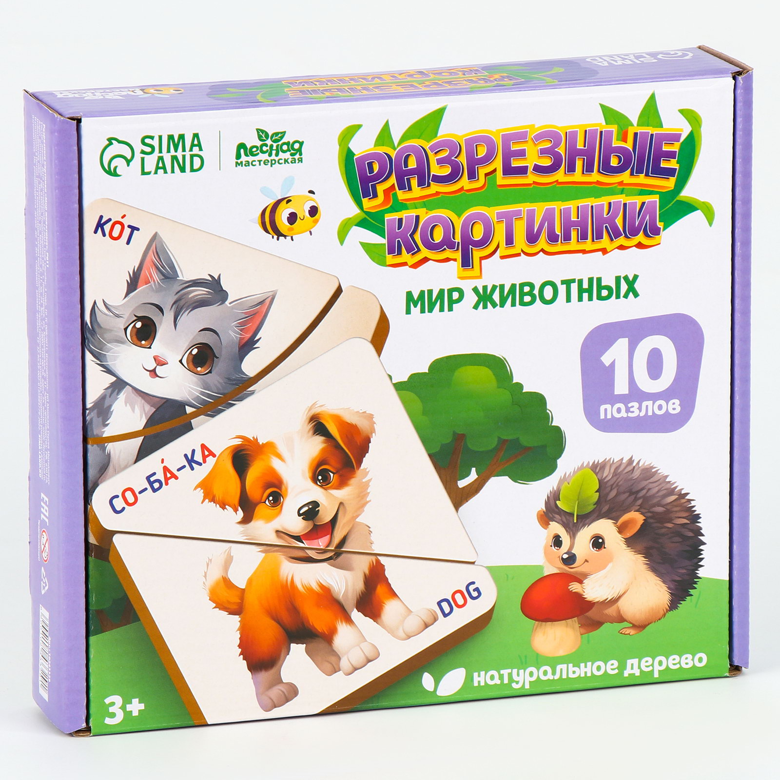 Картинки - половинки детские "Животные", пазлы деревянные развивающие для малышей, Лесная мастерская, Россия