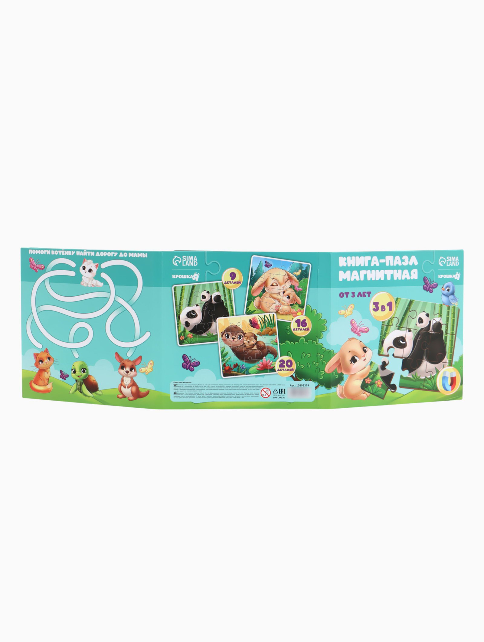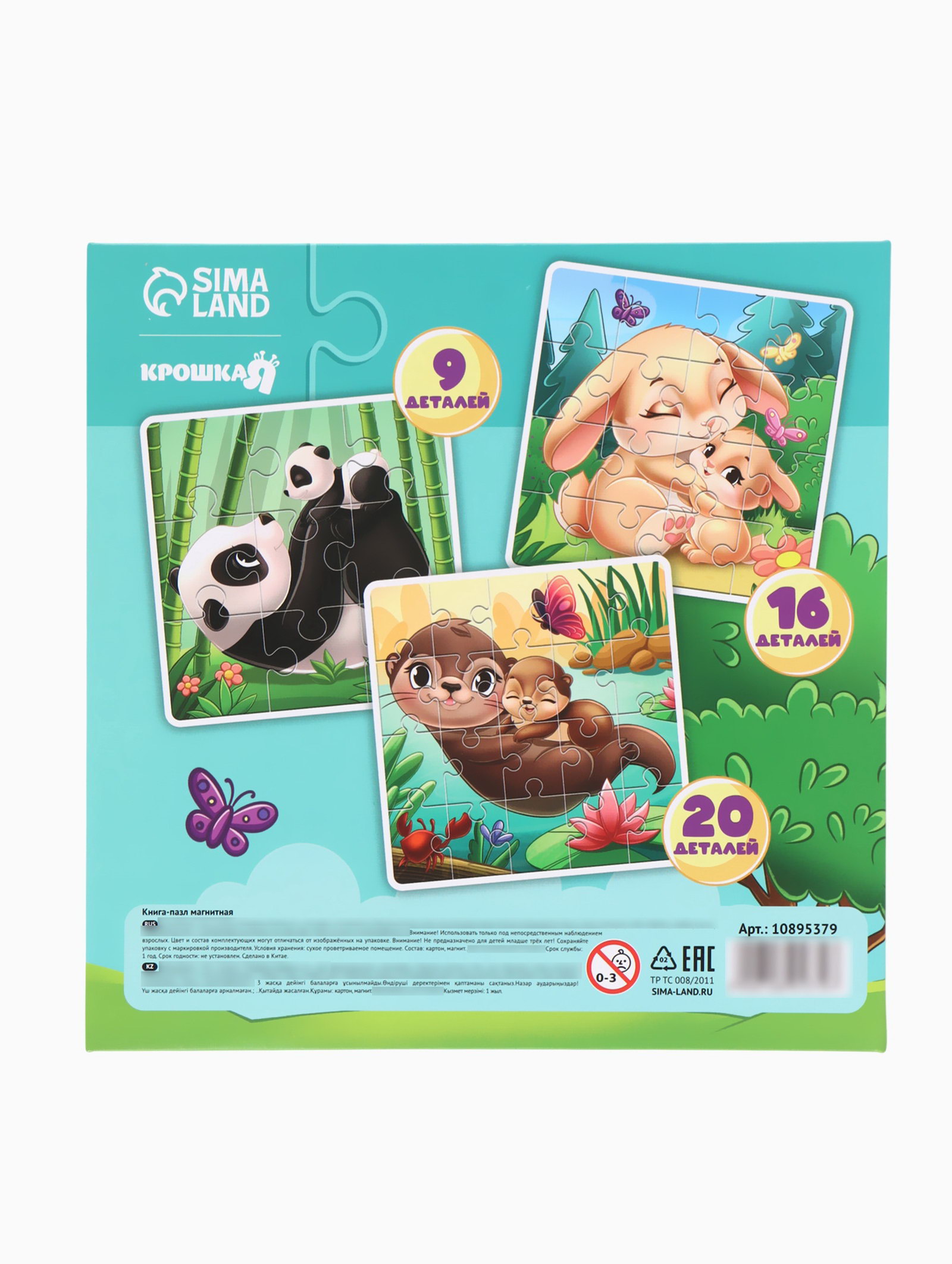 Магнитные пазлы для малышей "Мамы и малыши", книга 3 в 1, 18x18x1.5 см., Крошка Я, Китай