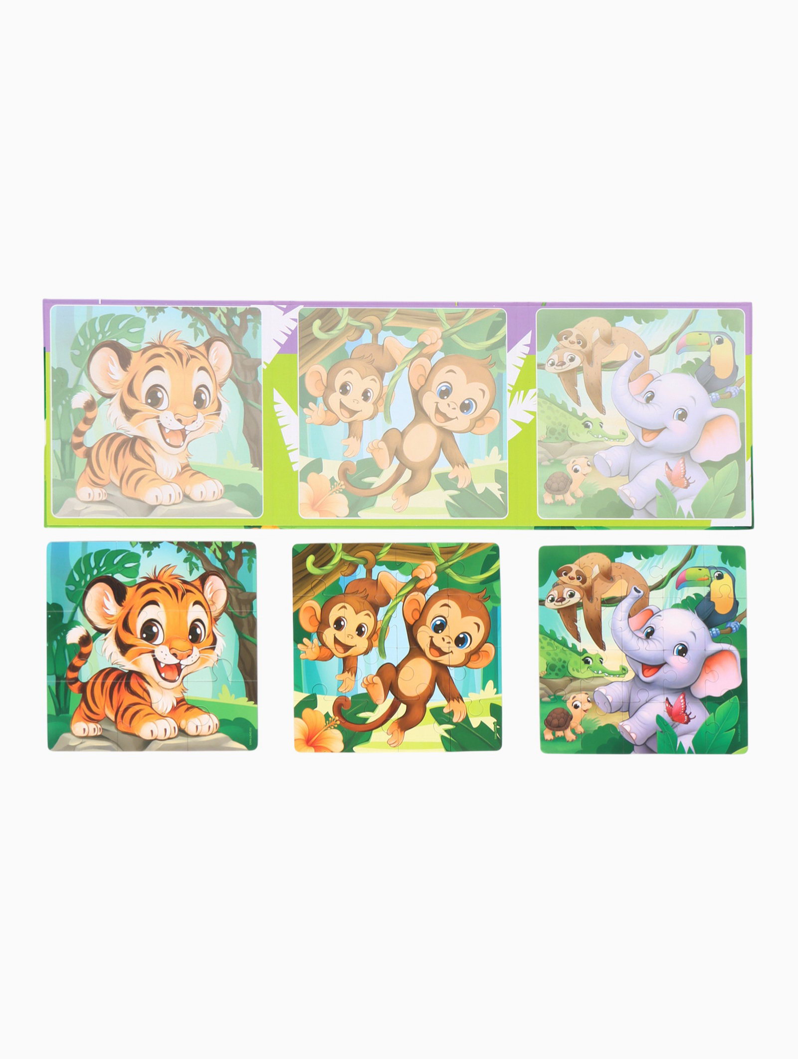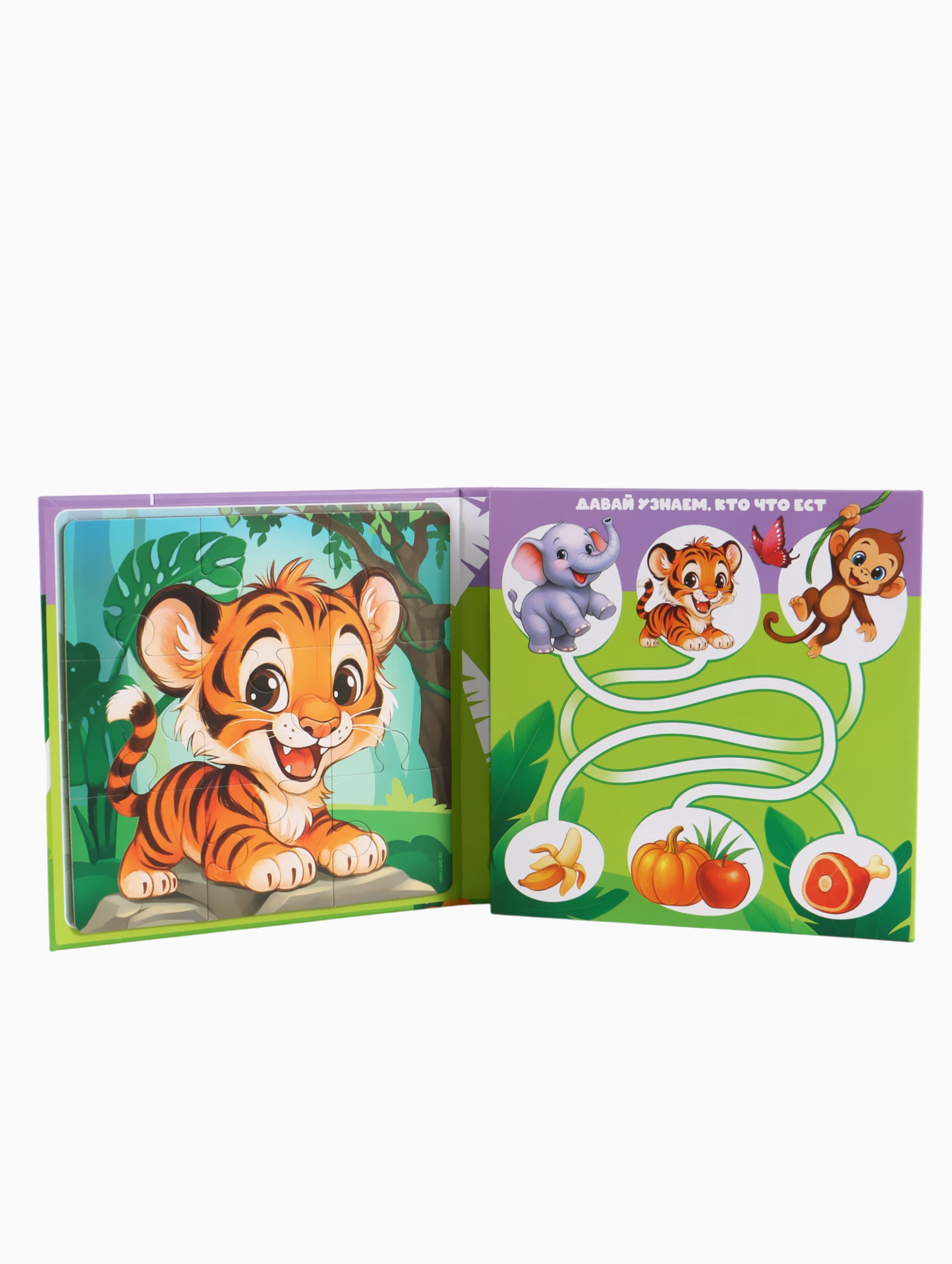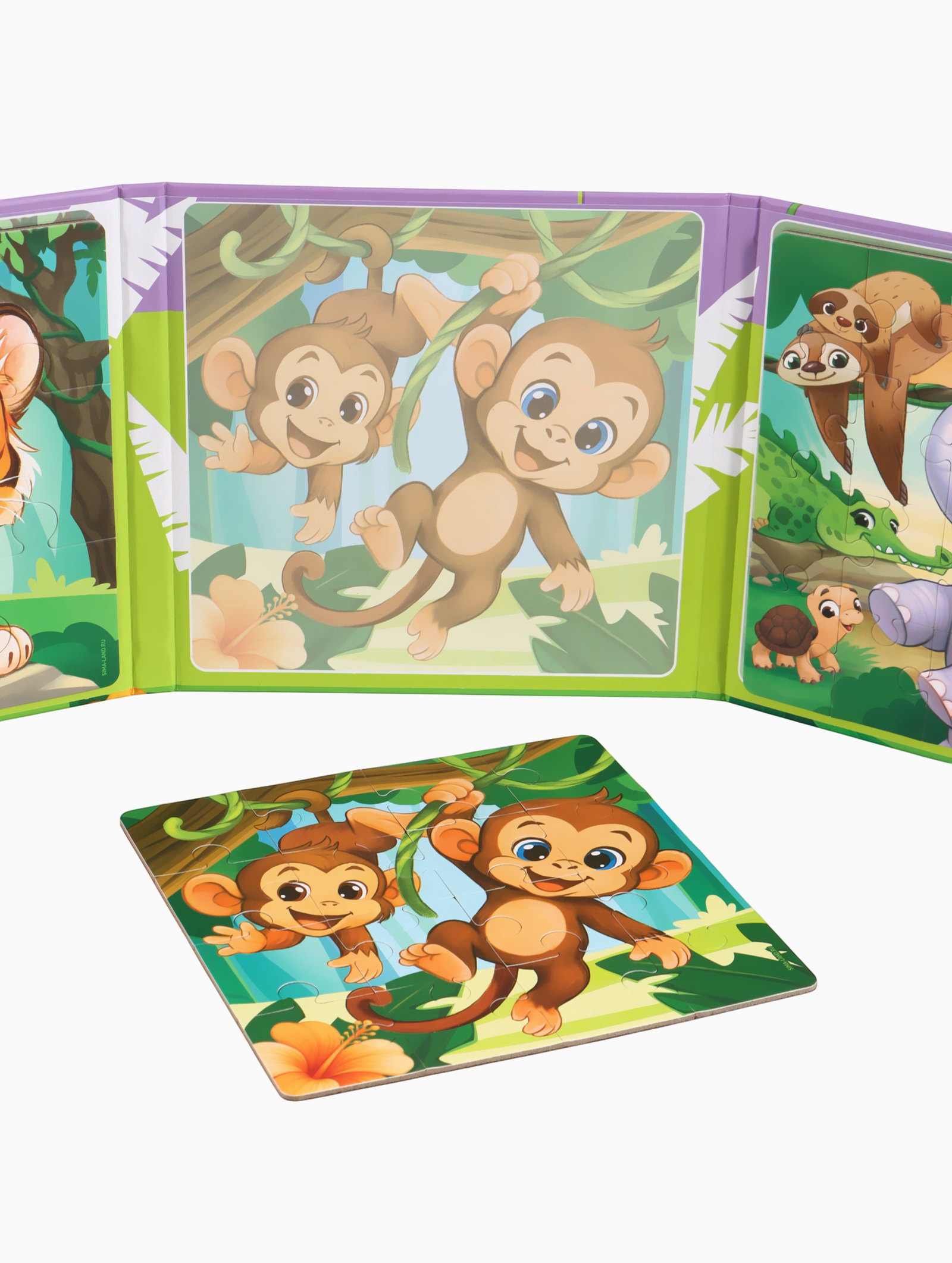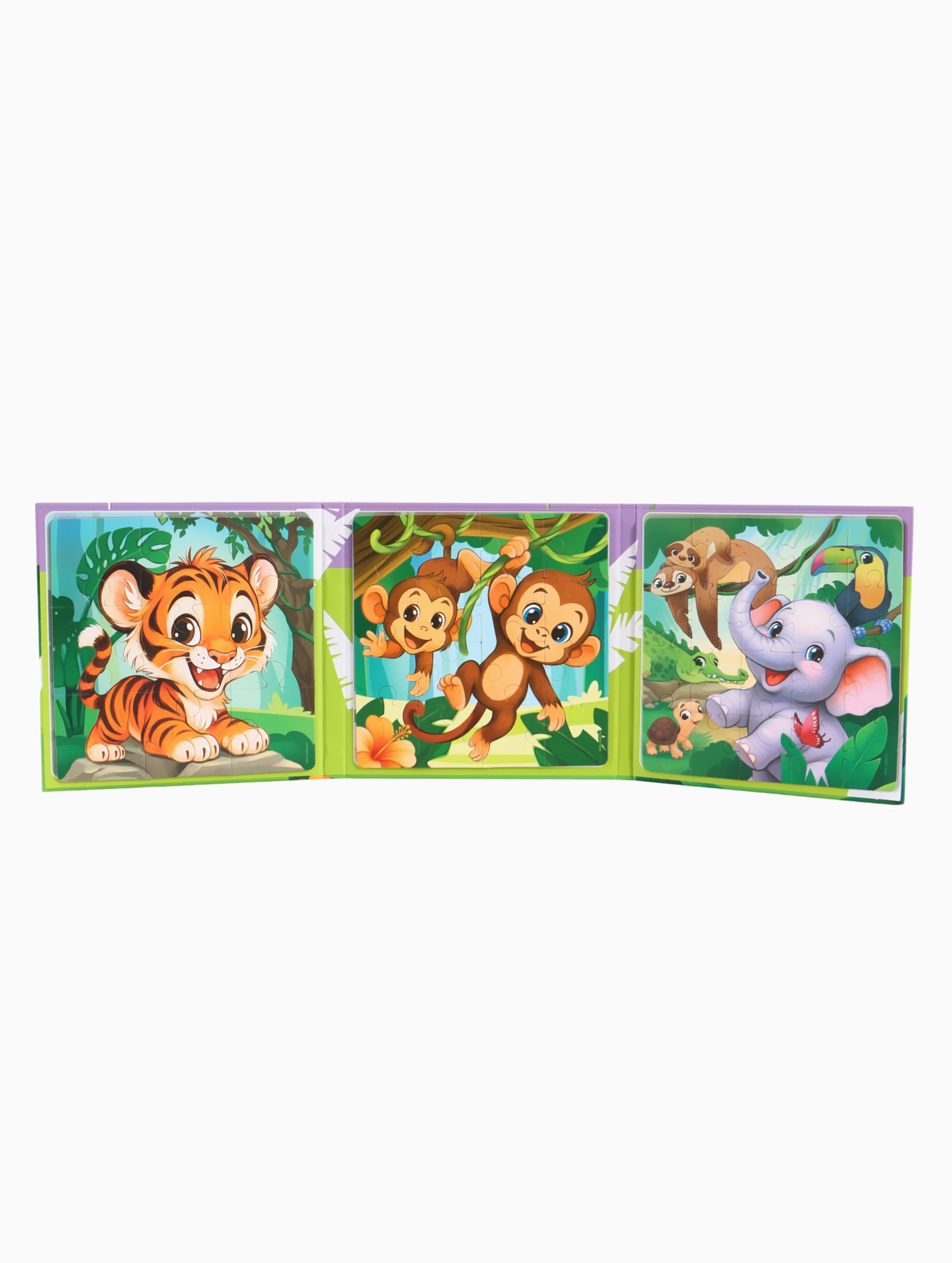 Магнитные пазлы для малышей "Зверята", книга 3 в 1, 18x18x1.5 см., Крошка Я, Китай