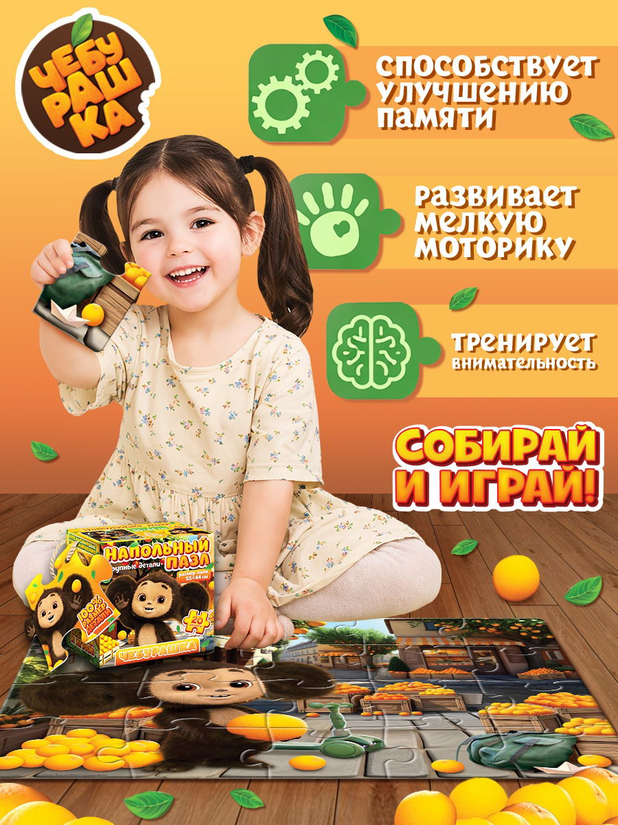 Напольный пазл 20 деталей, 16.5x16.5x8 см., ЧЕБУРАШКА, Китай