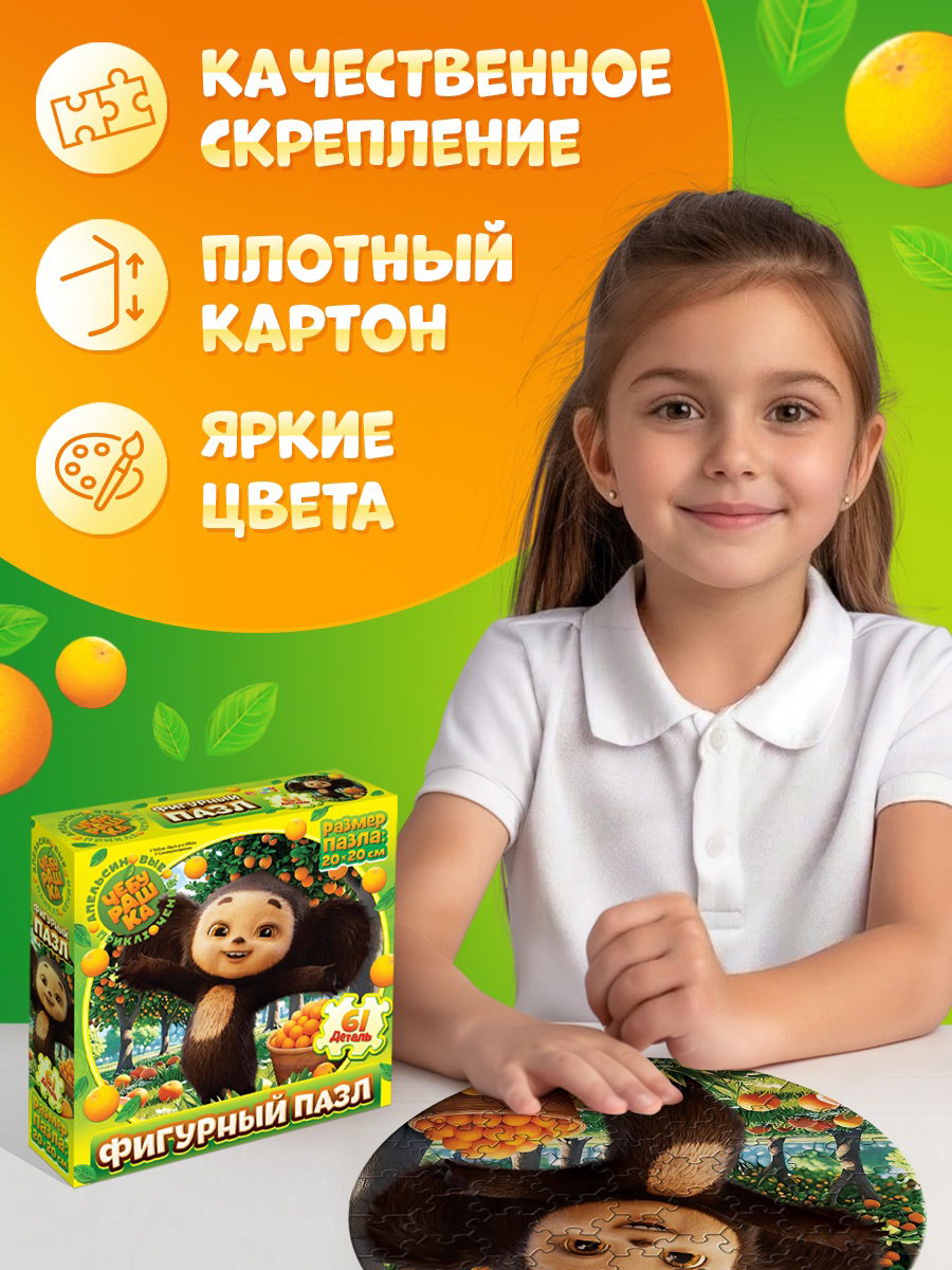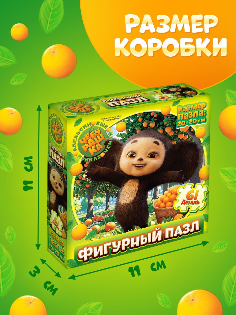 Пазл фигурный 61 деталь, 11x11x3 см., ЧЕБУРАШКА, Китай