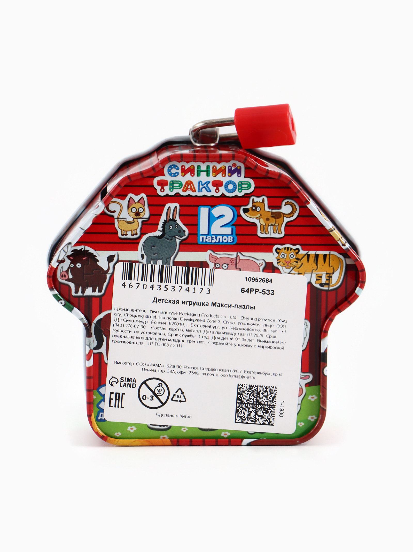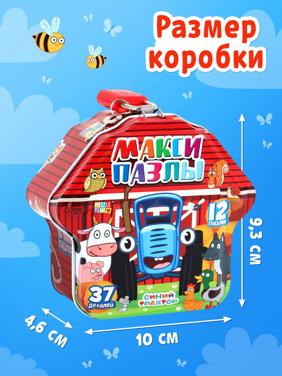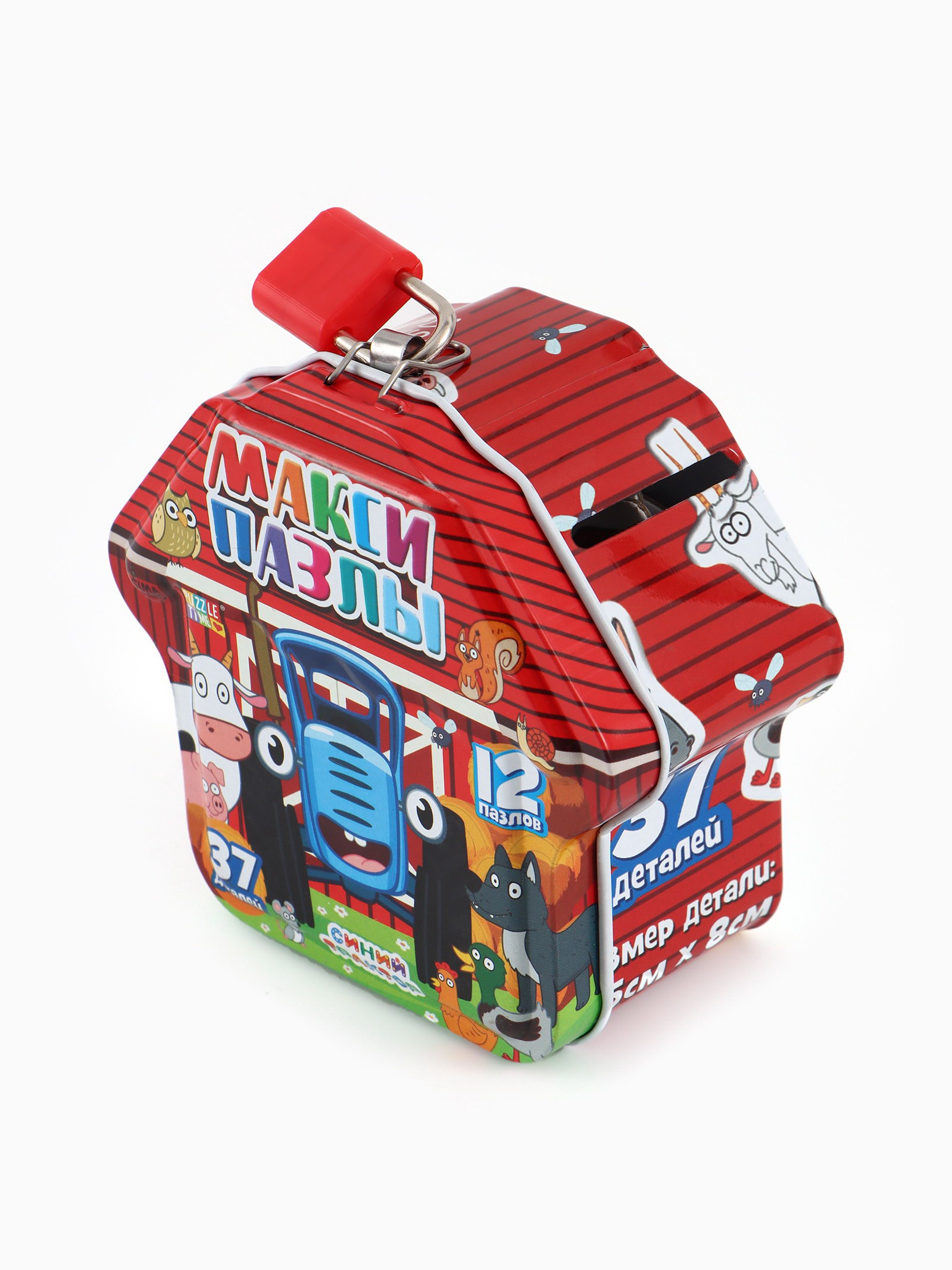 Макси - пазлы в металлической копилке с замочком, 5x10x9.5 см., Синий трактор, Китай