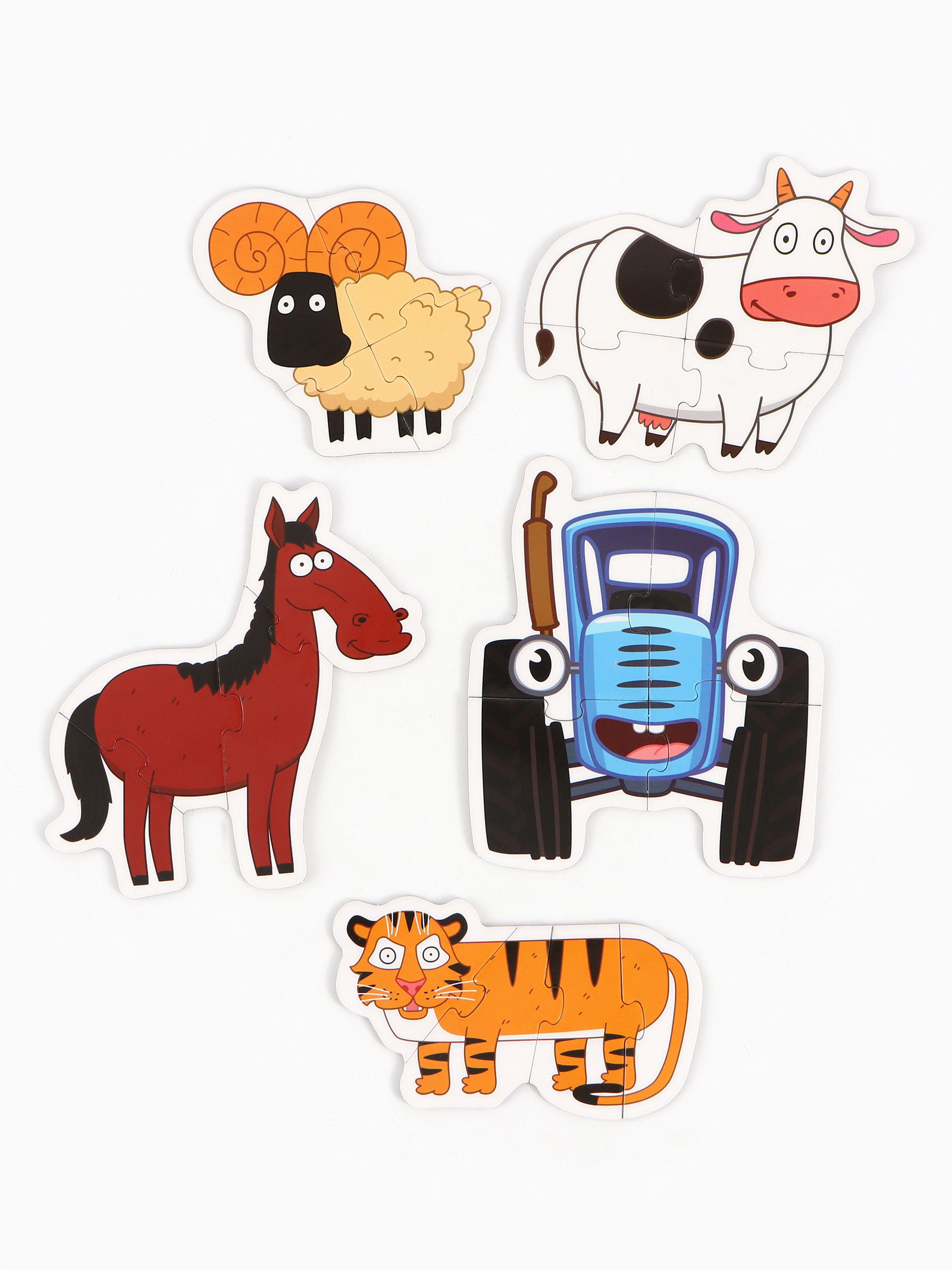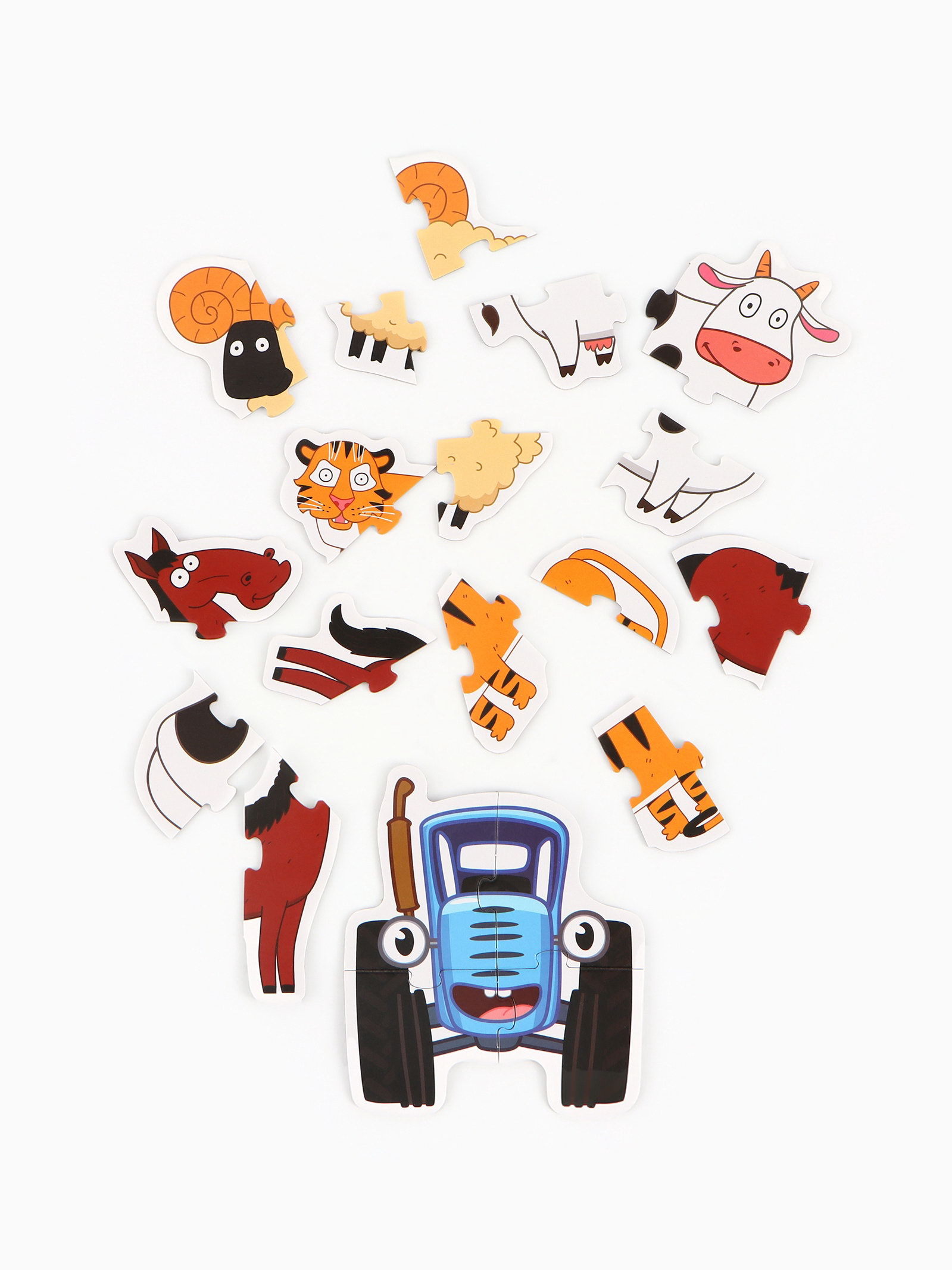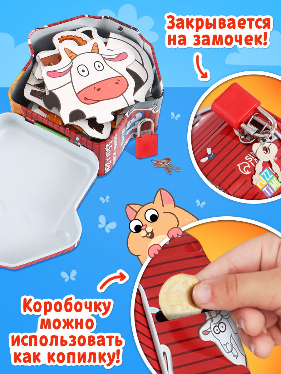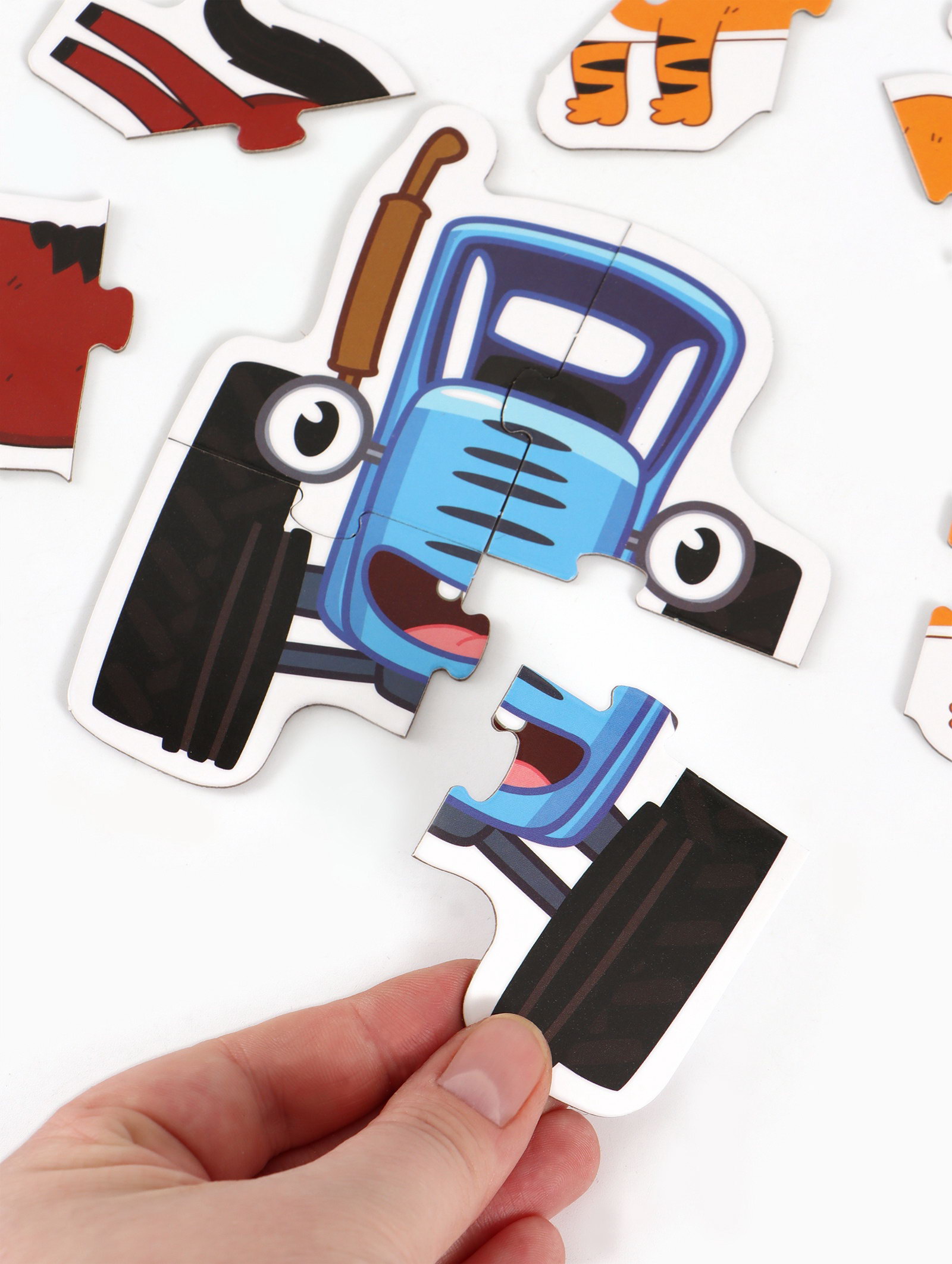 Макси - пазлы в металлической копилке с замочком, 5x10x9.5 см., Синий трактор, Китай
