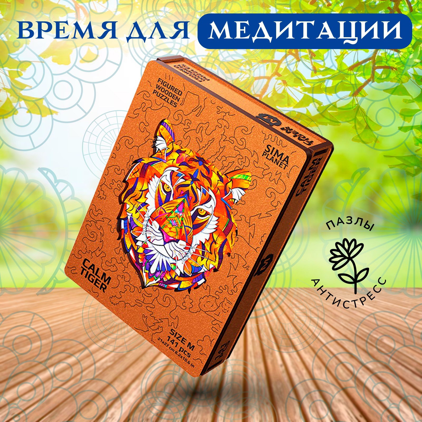 Пазл фигурный деревянный Calm Tiger, размер 21x27 см, 141 деталь, Россия