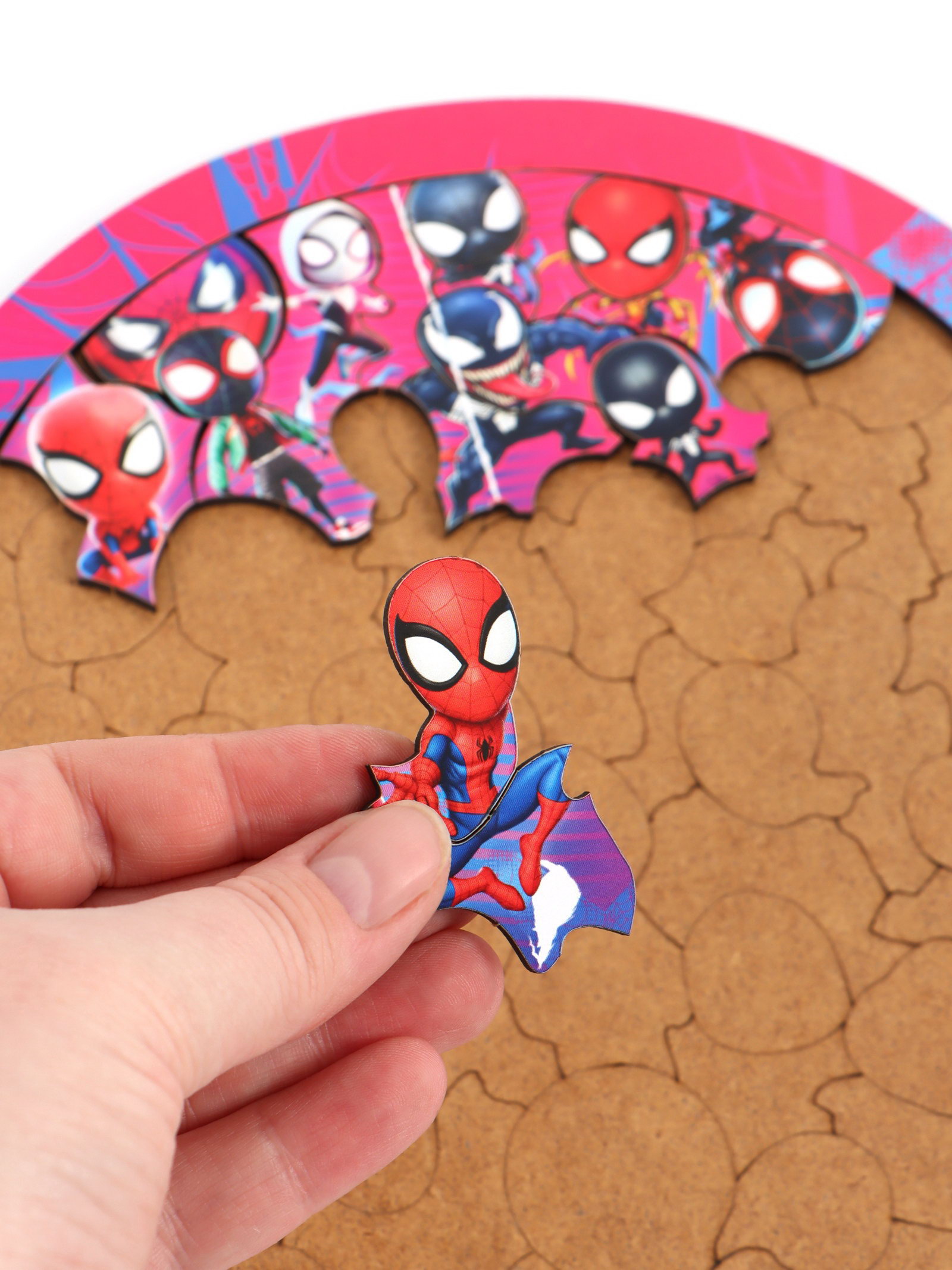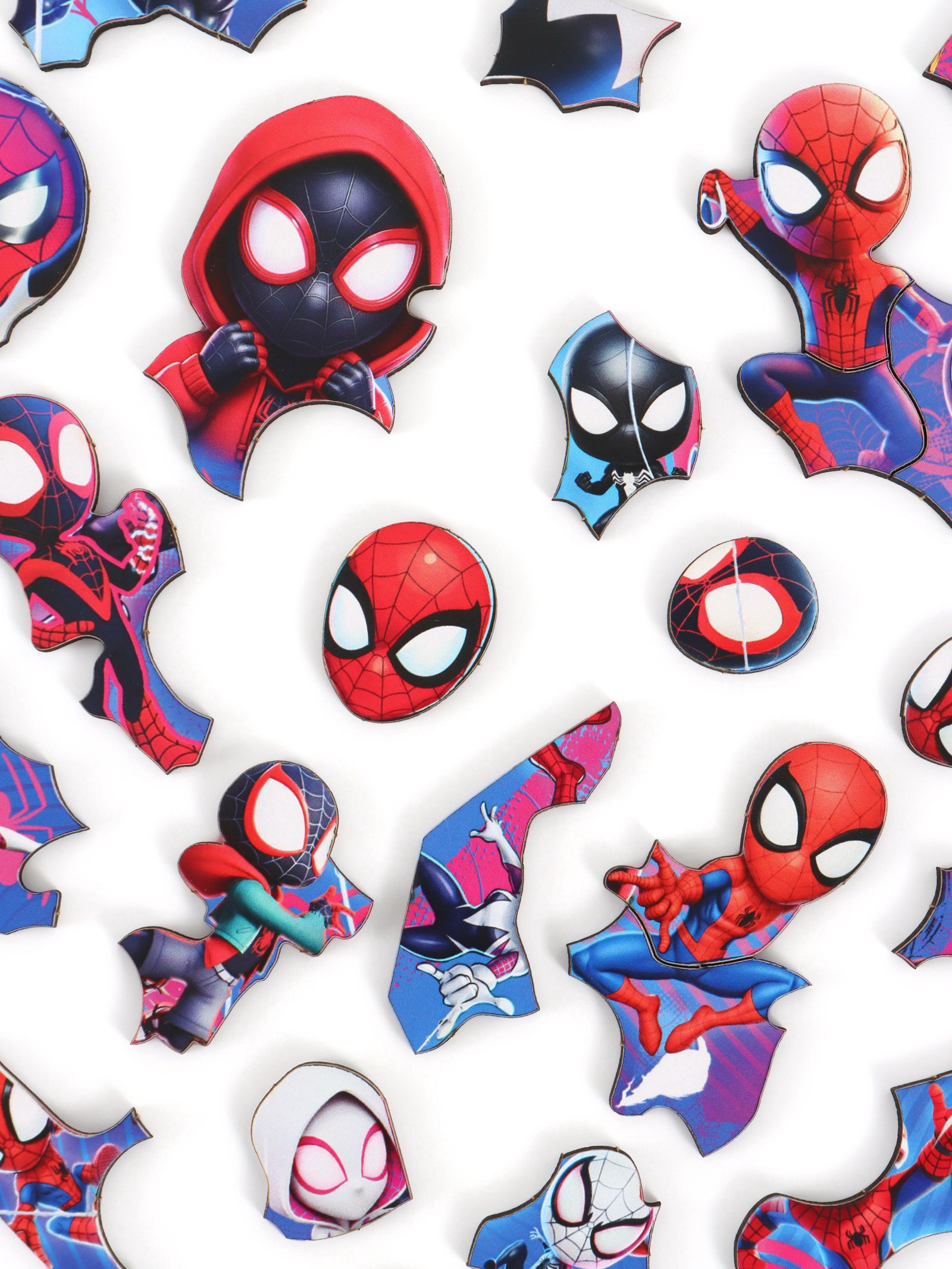 Размер упаковки: 25 x 0.7 x 27 см. tnved: 9503006000 Лицензия разработки: Да Тип пазлов: Головоломки Тематика: Мультфильмы Длина собранного пазла, см: 27.9 Особенности: Без особенностей Ширина собранного пазла, см: 21 Для кого: Для мальчика Форма: Фигурный Вид: Настольные Возраст: От 3 лет Количество элементов: 58 Увлекательный деревянный пазл в оригинальной фигурной форме, посвящённый миру Человека-паука. На яркой и детализированной картинке изображены разные версии Спайдермена от классического героя до мультяшных и альтернативных персонажей, включая Венома и Паутину. Пазл станет отличным выбором для юных фанатов супергероев и любителей головоломок. Изделие изготовлено из натурального дерева экологичного и безопасного материала. Фигурная форма пазла не только создаёт интересный визуальный эффект, но и позволяет использовать собранную картинку как декоративный элемент интерьера. Пазл способствует развитию у детей логического мышления, внимания, пространственного восприятия и мелкой моторики. Подходит для самостоятельной игры или совместного досуга с родителями. | ||