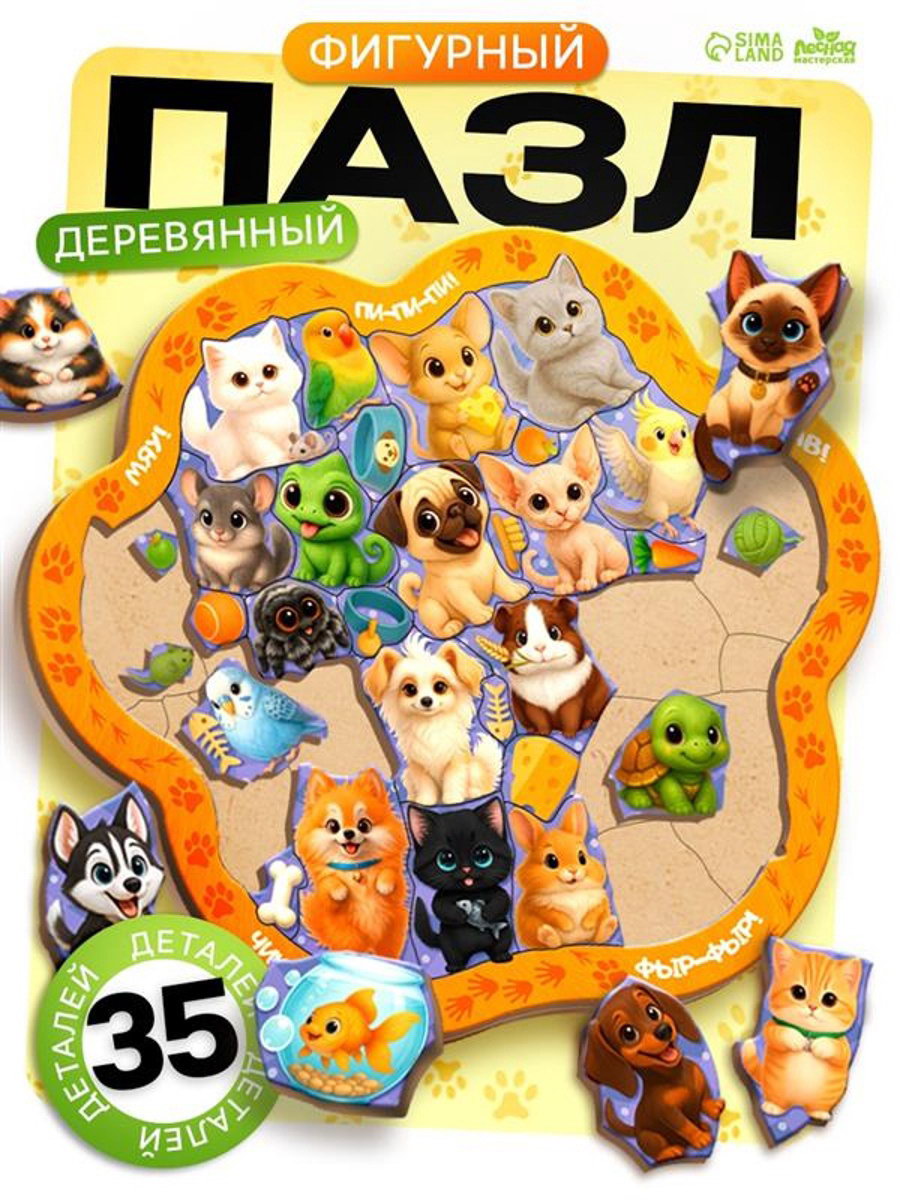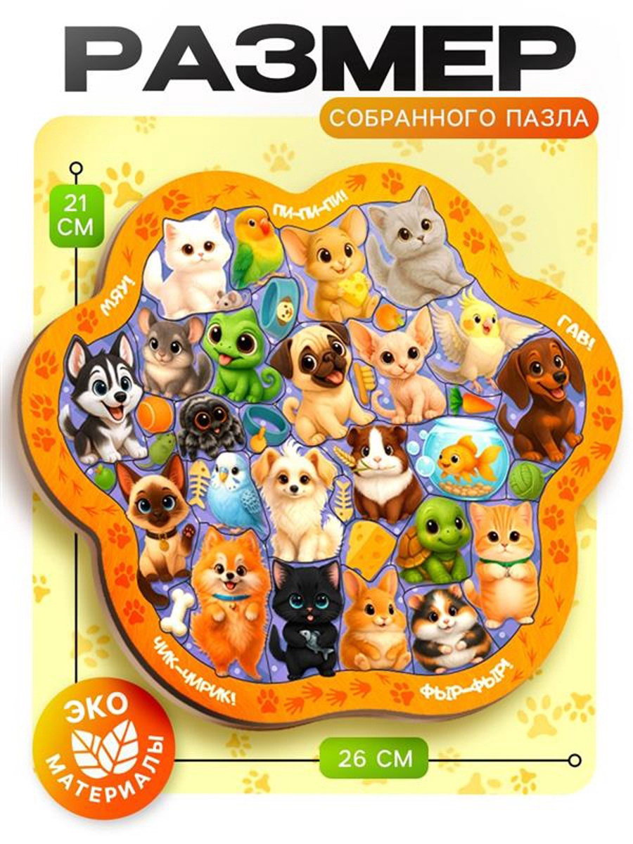 Пазл фигурный в рамке "Домашние животные", деревянный, 21x0.4x26 см., Лесная мастерская, Россия