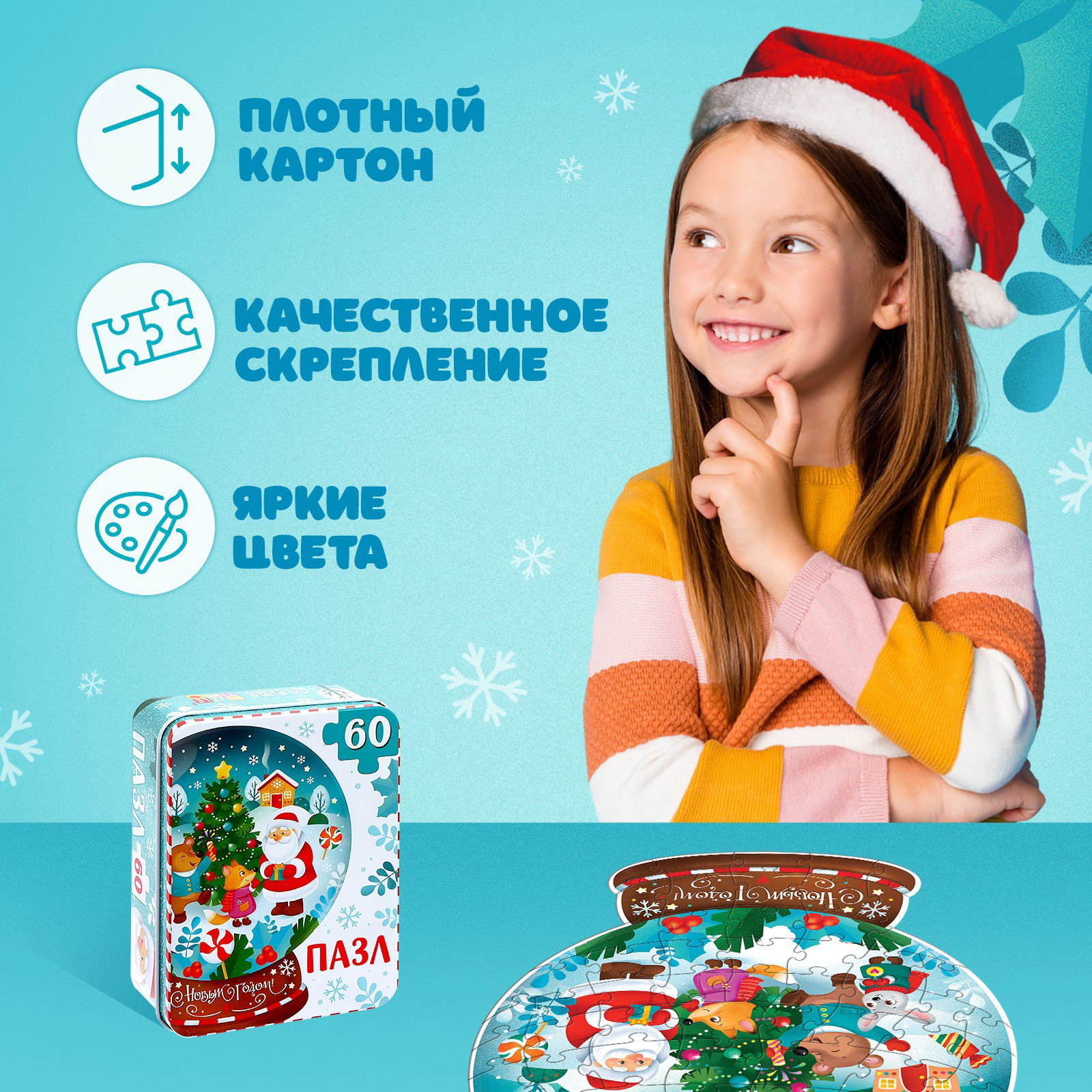 Тематика: Животный мир, Новогодняя Размер упаковки: 4.5 x 13 x 10 см. Возраст: От 6 лет Игрушка с видео: Да tnved: 9503007000 Вид: Настольные Особенности: Без особенностей Форма: Фигурный Тип пазлов: Классические Количество элементов: 60 Для кого: Унисекс Длина собранного пазла, см: 28 Ширина собранного пазла, см: 23 Тематика праздника: Новый год Животное восточного календаря: Кролик Фигурный пазл это занимательная развивающая игра в новом формате. Необычные элементы привлекают внимание и стимулируют познавательную активность на более высоком уровне, чем детали классической формы. Соберите все детали в одно целое, и вы получите яркую картинку размером 23 x 28 см В компактной металлической коробочке удобно хранить пазлы или мелкие игрушки малыша. Польза собирания пазлов для детей:
