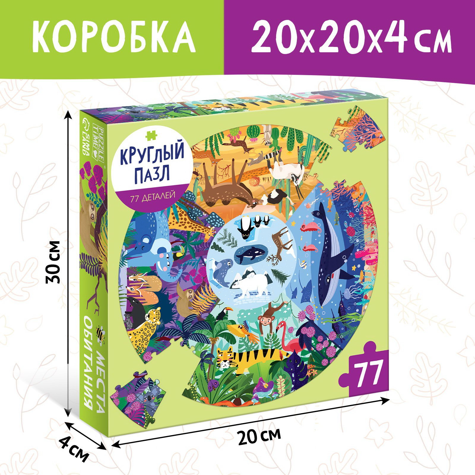 Круглый пазл "Места обитания", 77 деталей, Puzzle Time, Китай