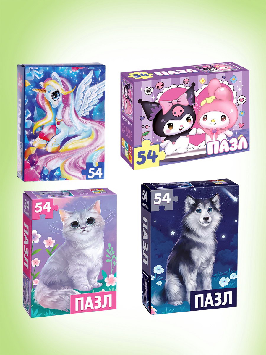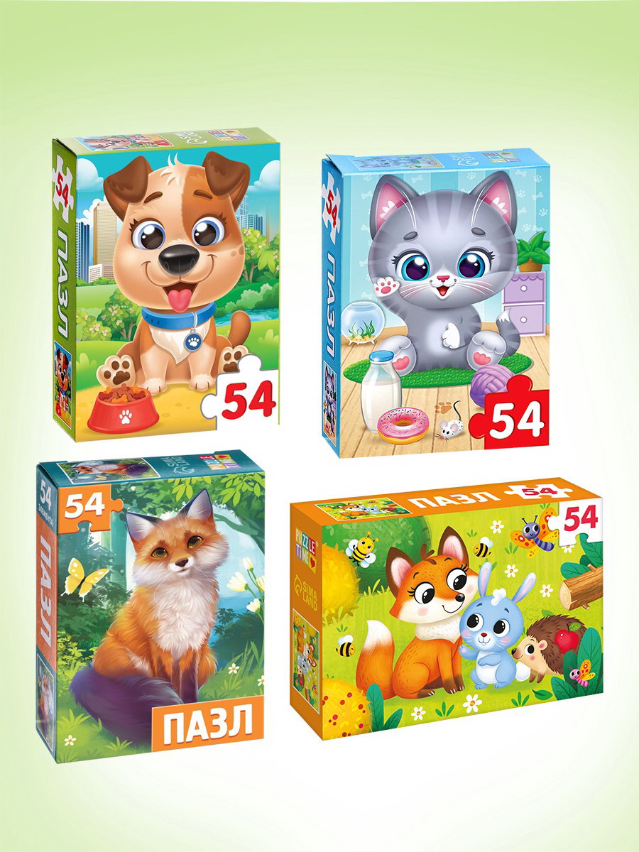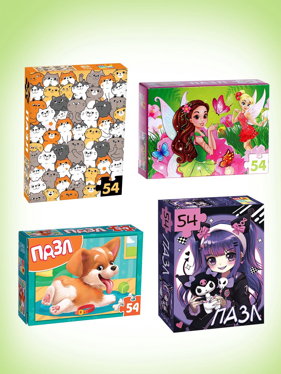 Пазлы большой набор, 20в1 МИКС, 54 элемента в каждом пазле, Puzzle Time, Россия