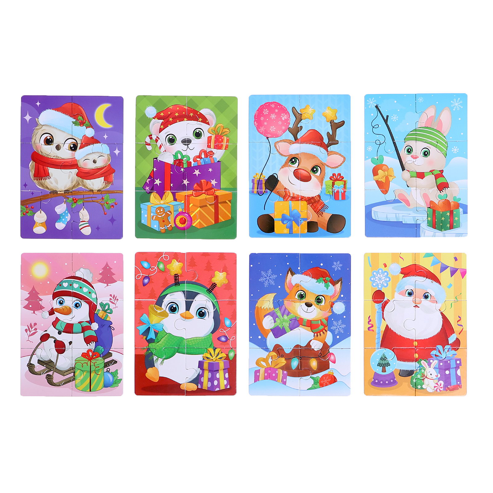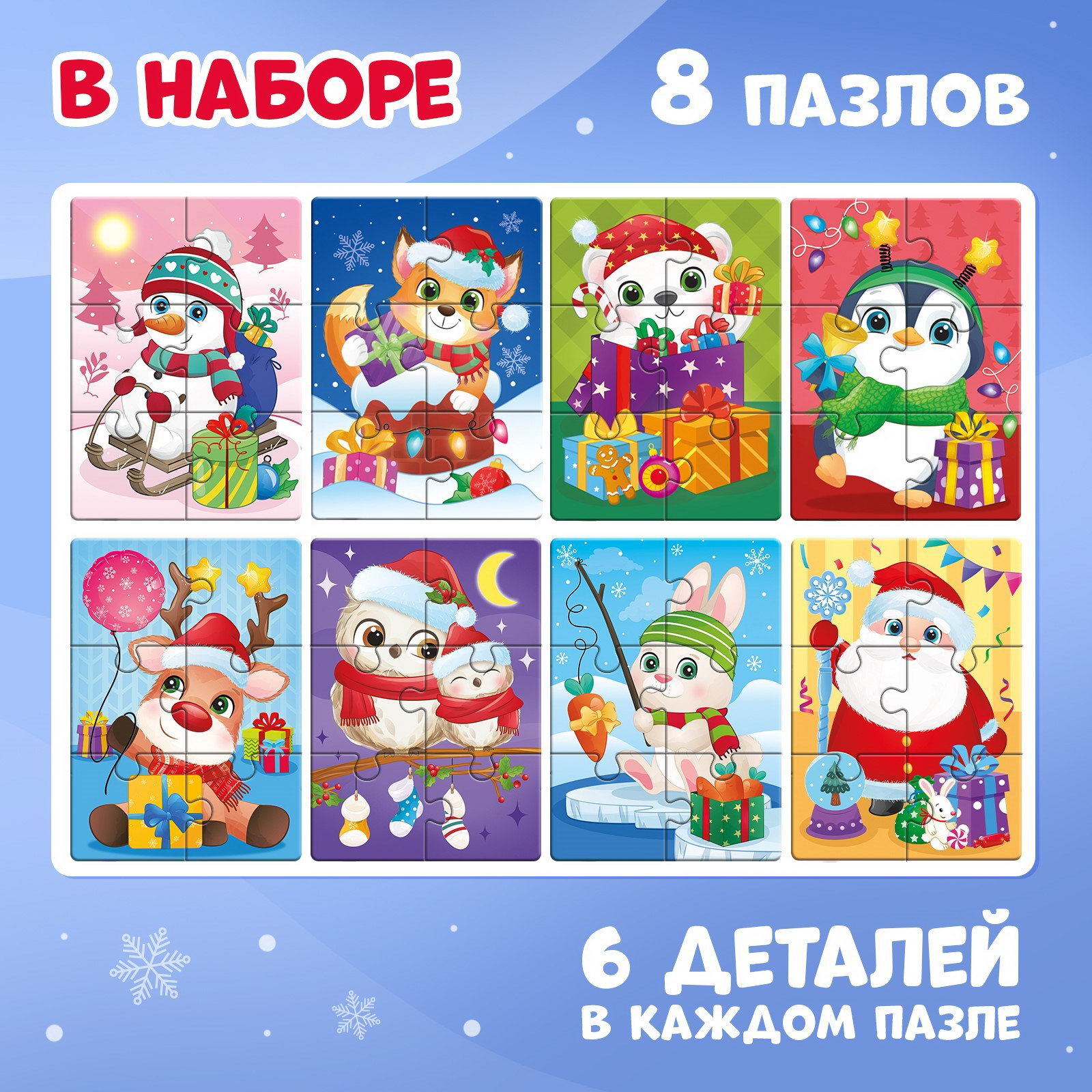 Макси - пазлы 8 в 1 "Ждут зверята Новый год", 48 деталей, 11x15x3 см., Puzzle Time, Китай
