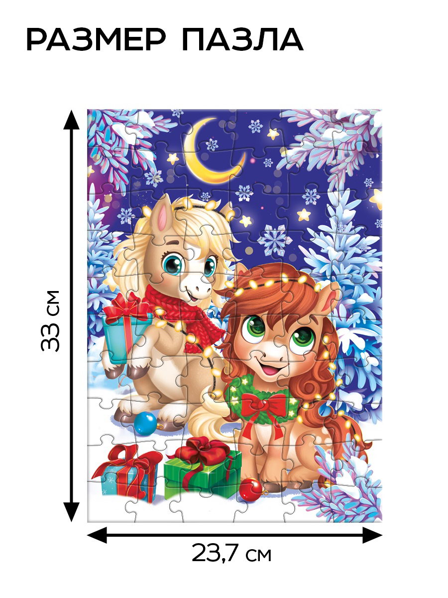 Пазл новогодний "Лошадки", 60 деталей, Puzzle Time, Россия