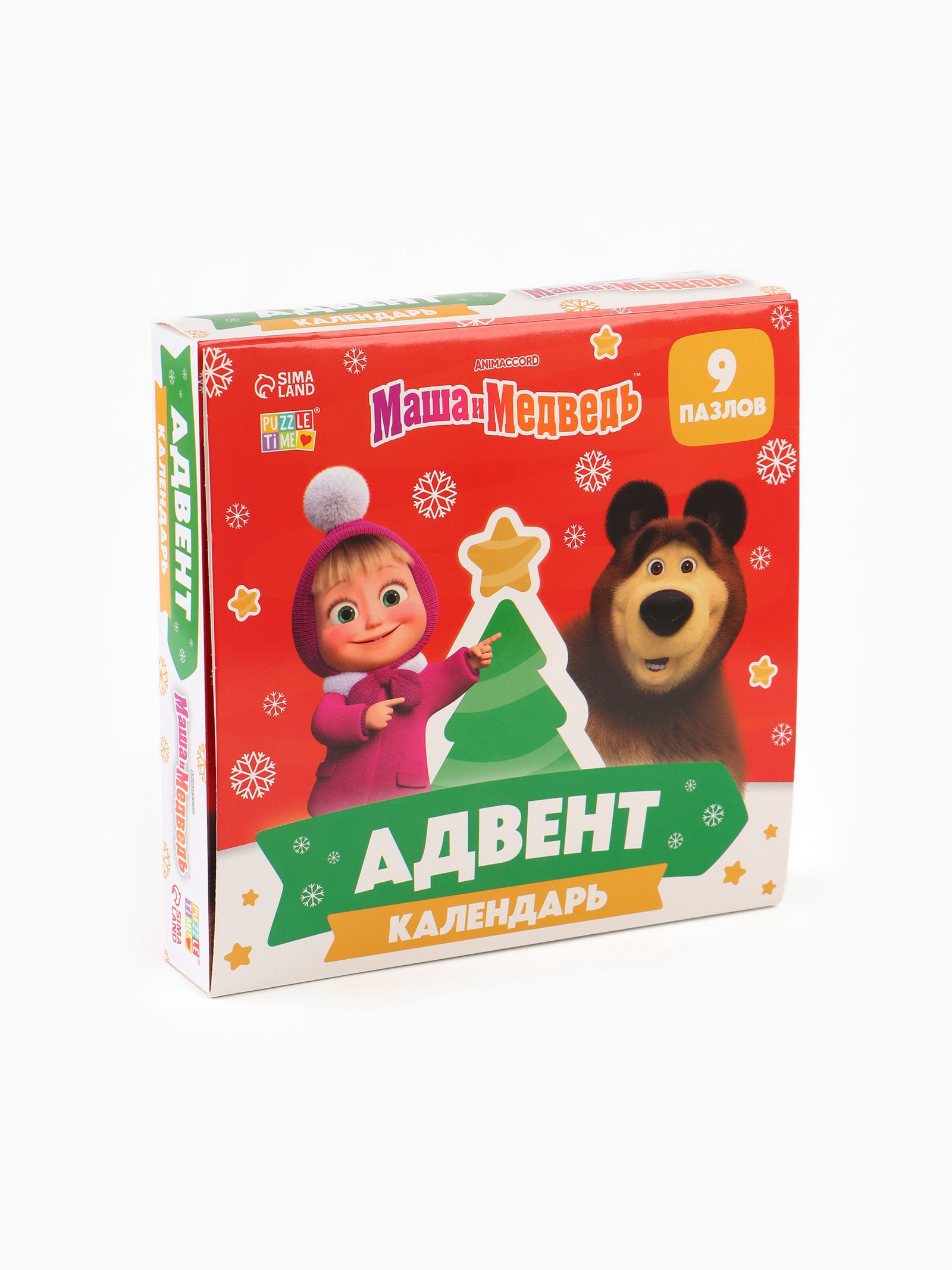 Адвент-календарь "Новый год", 9 пазлов, 24x24x4.5 см., Маша и Медведь, Китай
