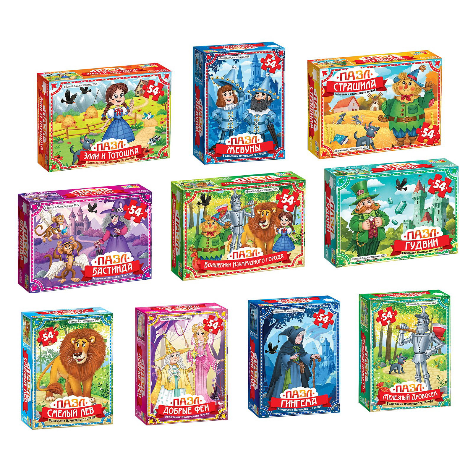 Пазлы "Волшебник изумрудного города", большой набор 10 в 1, 54 детали в каждом, 13x13.5x9.5 см., Puzzle Time, Россия