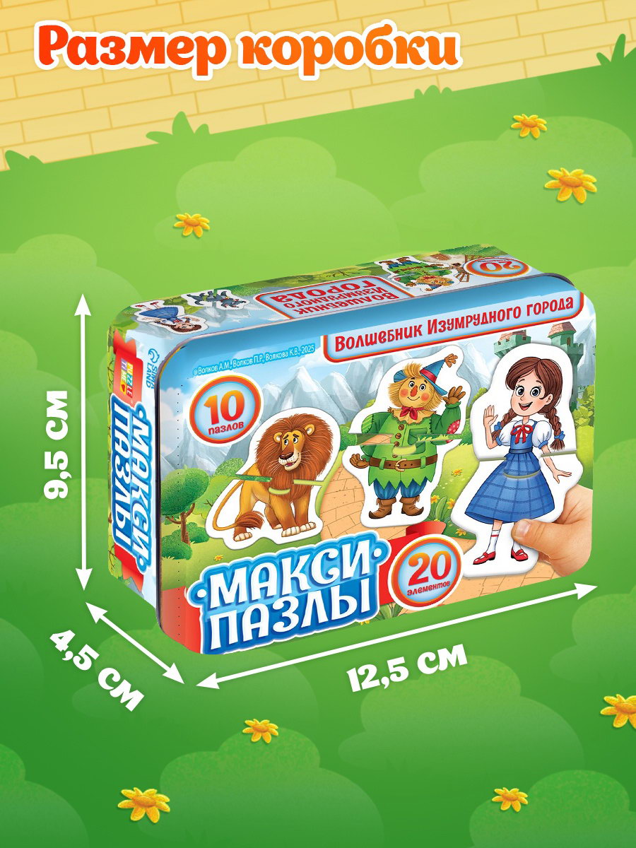 Макси - пазлы в металлической коробке "Волшебник изумрудного города", 10 пазлов, 20 деталей, 9x13x5 см., Puzzle Time, Китай