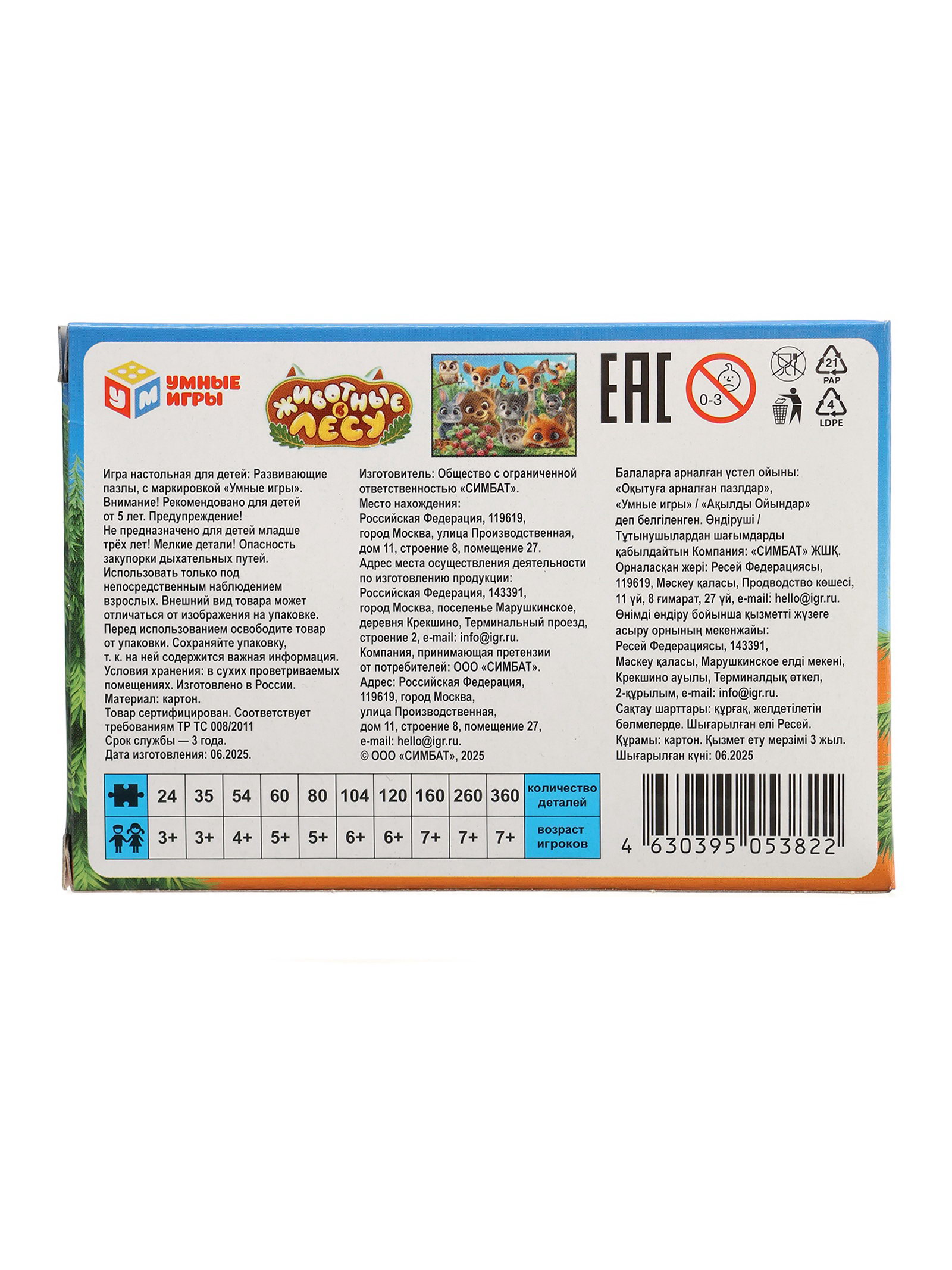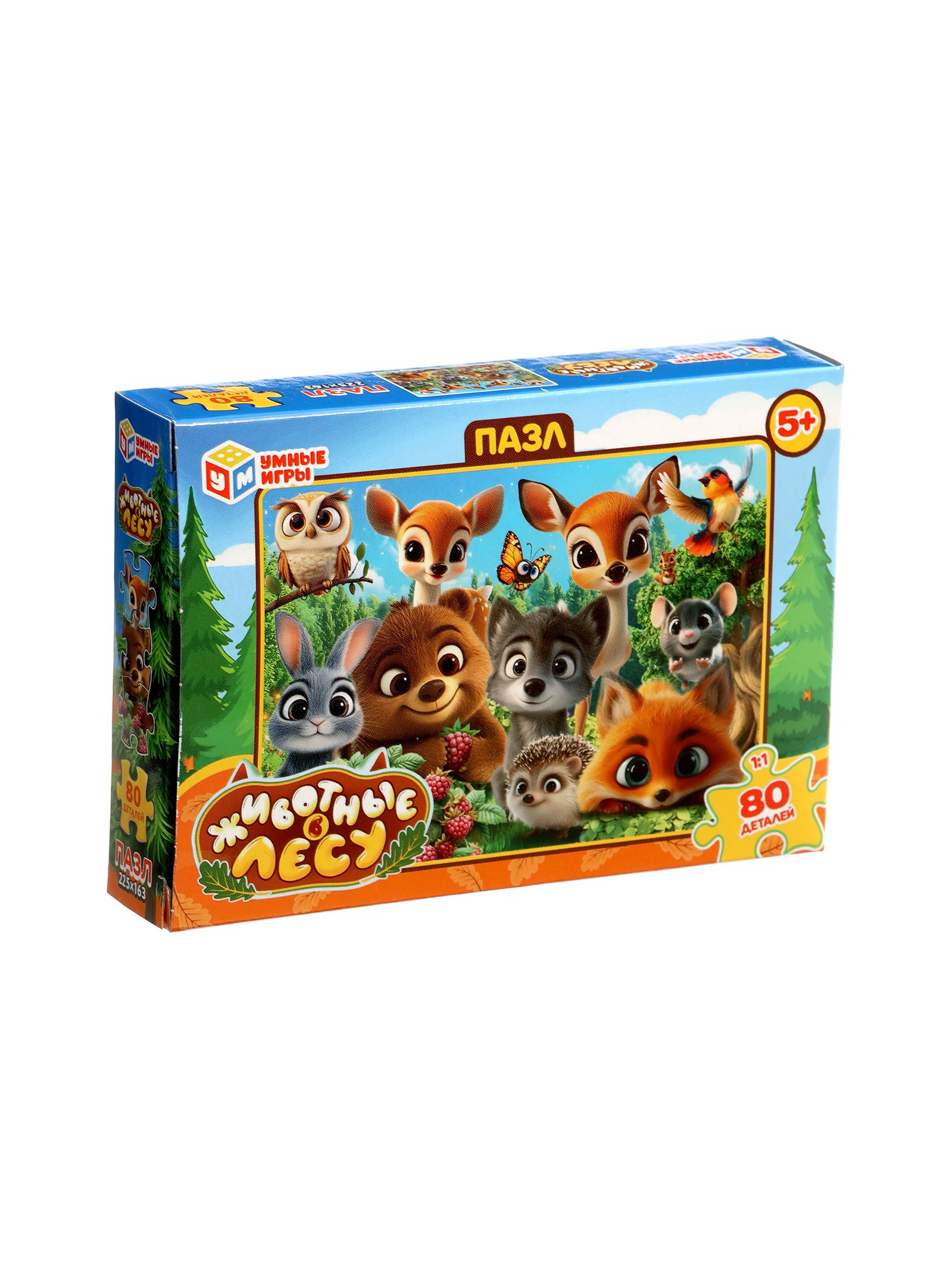 Пазл "Животные в лесу", 80 элементов, Умные игры, Россия