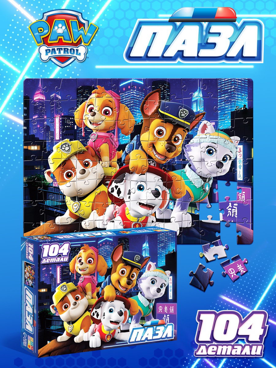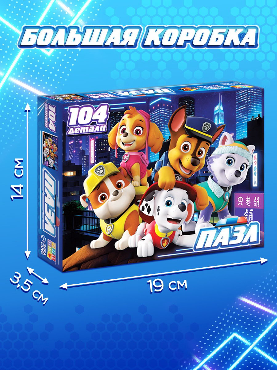 Для кого: Для девочки, Для мальчика, Унисекс Размер упаковки: 14 x 3.5 x 19 см. tnved: 9503007000 Лицензия разработки: Да Тематика: Мультфильмы Возраст: От 3 лет Особенности: Без особенностей Вид: Настольные Форма: Прямоугольник Количество элементов: 104 Тип пазлов: Классические Ширина собранного пазла, см: 23.7 Длина собранного пазла, см: 33 Когда на коробке улыбаются Маршалл, Скай, Рокки и остальные щенки это не просто пазл. Это приглашение в знакомый мир дружбы, смелости и помощи. Ребёнок будет рад узнавать своих любимых героев, а вы видеть, как он сосредоточенно подбирает детали, радуется каждому найденному элементу и гордится готовой картинкой. Идеально для дошкольников и первоклассников, кто уже знает, что значит быть командой. Почему этот пазл отличный выбор: