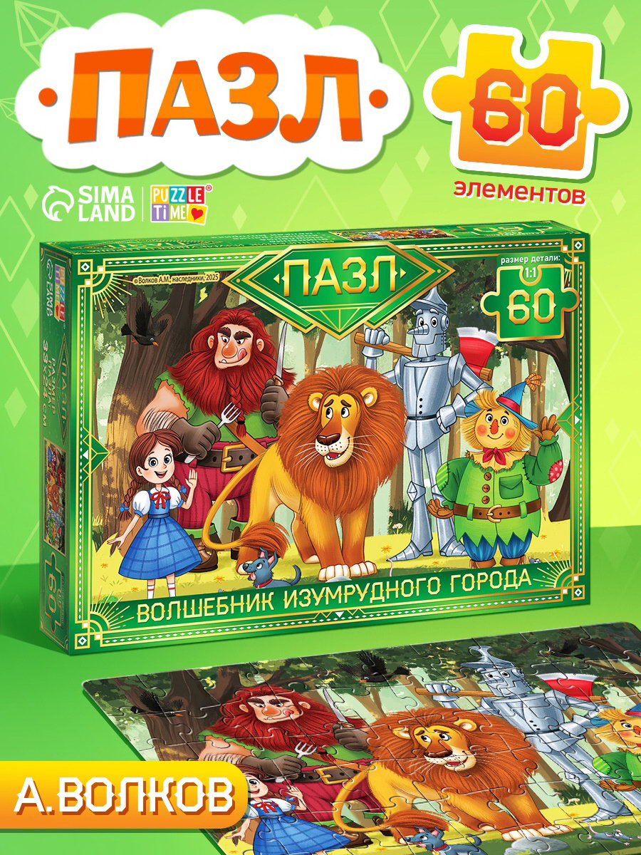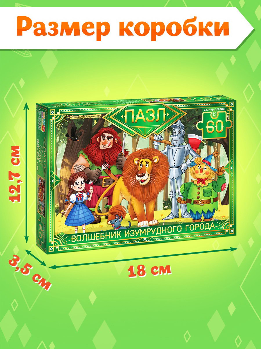 Пазл "Волшебник изумрудного города", 60 элементов, 12.7x18x3.5 см., Puzzle Time, Россия