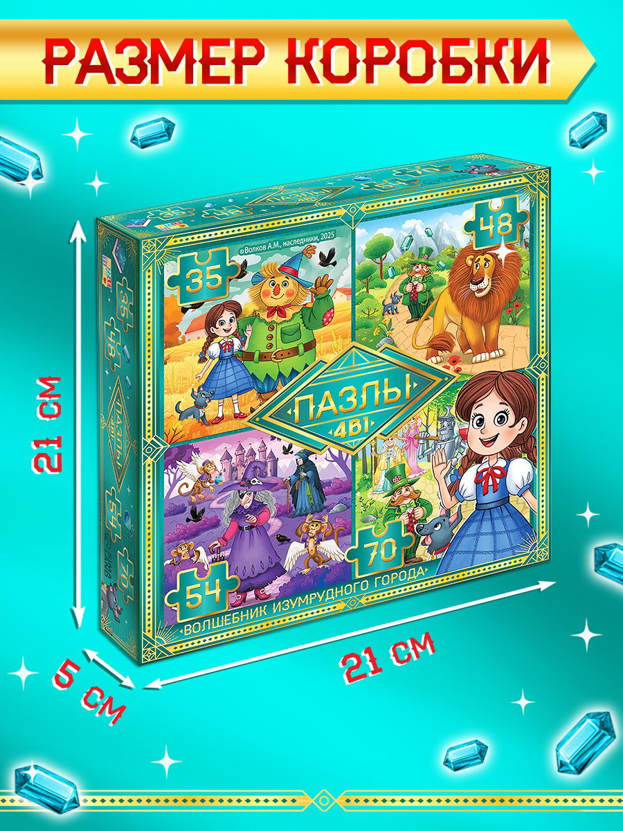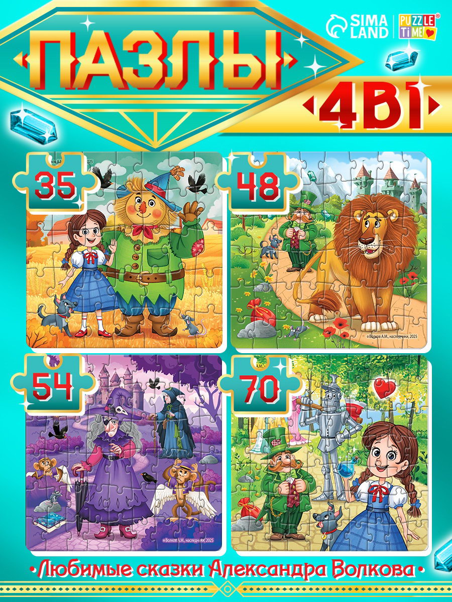 Пазлы 4 в 1 "Волшебник изумрудного города", 35, 48, 54, 70 деталей, 21x21x5 см., Puzzle Time, Китай