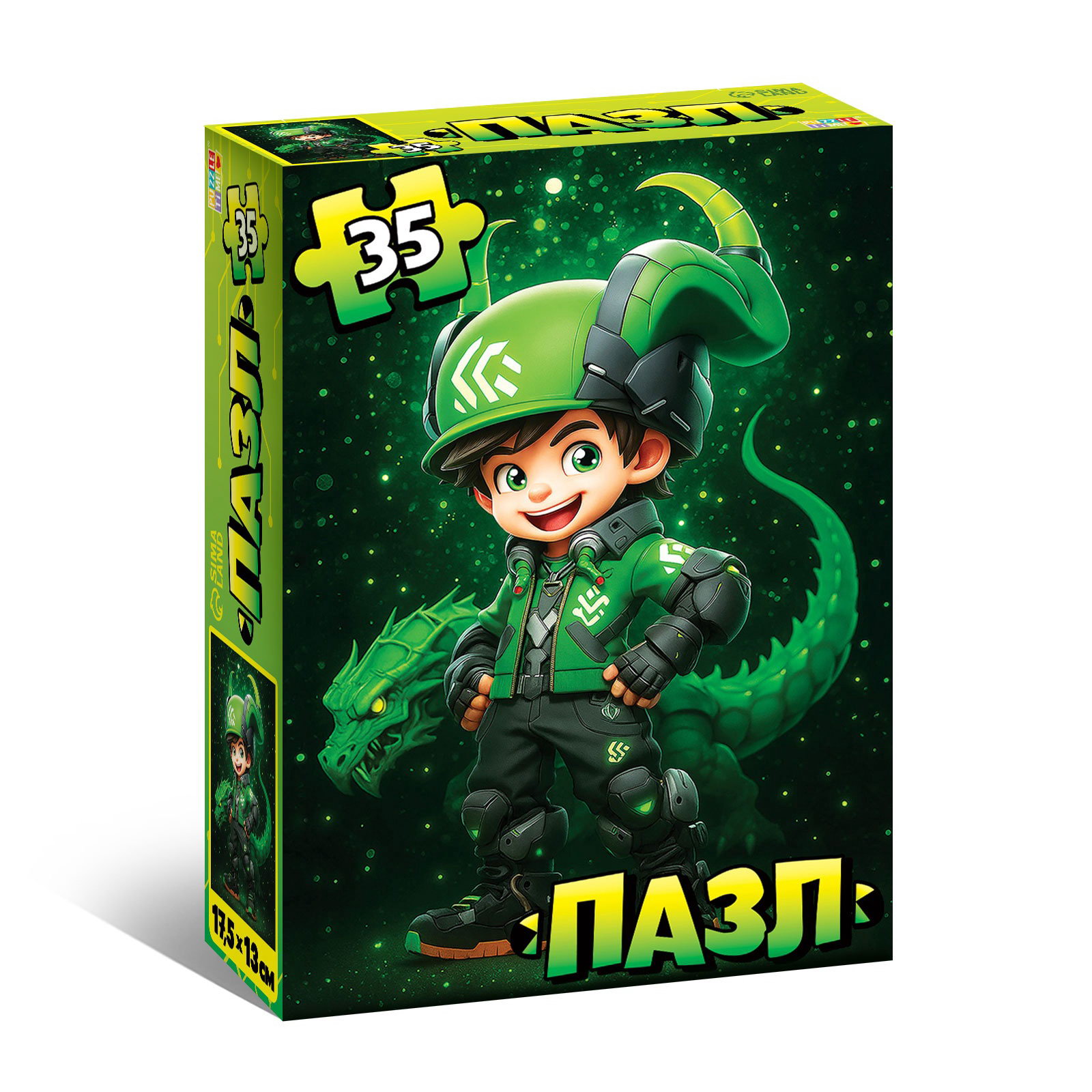 Возраст: Детский, Для детей, От 4 лет Размер упаковки: 6.5 x 2.5 x 9 см. tnved: 9503007000 Вид: Настольные Длина собранного пазла, см: 17.5 Количество элементов: 35 Особенности: Без особенностей Для кого: Для мальчика Ширина собранного пазла, см: 13 Тематика: Детская Форма: Прямоугольник Тип пазлов: Классические Набор: Нет Вид головоломки: Пазлы и мозаика Вид упаковки: Коробка картонная Маркировка: Честный знак Яркий, необычный и немного фантастический этот дракончик сочетает в себе магию и технологии. Всего 35 крупных деталей легко складываются в цельную картинку, где каждый элемент добавляет характер: светящиеся глаза, механические крылья, улыбка-экран. Готового "Кибердракончика" хочется рассматривать, придумывать ему имя и даже сочинять историю откуда он прилетел и зачем? Почему дети выбирают этот пазл: