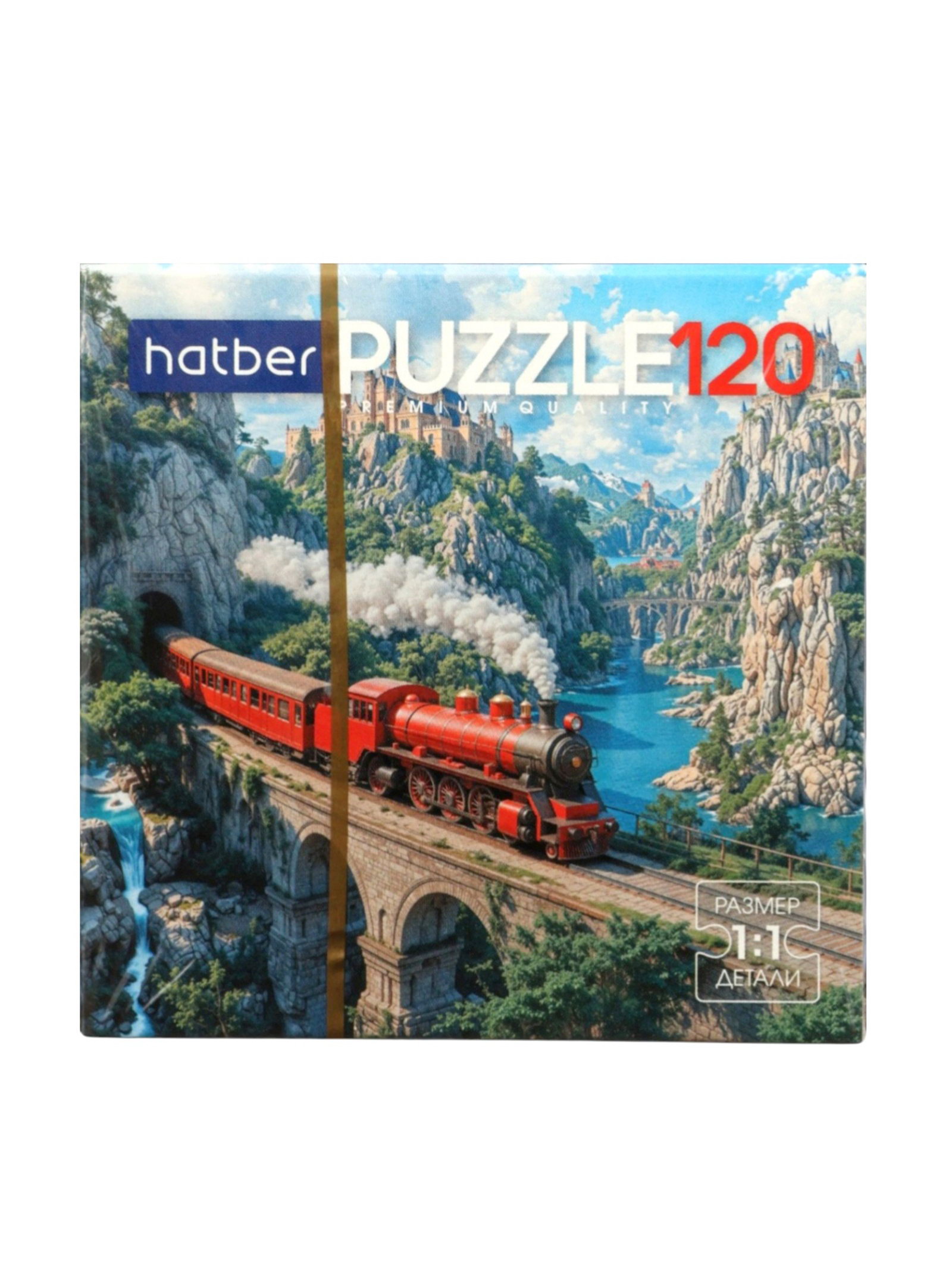 Пазл "Красный паровоз", 120 деталей, Hatber, Россия