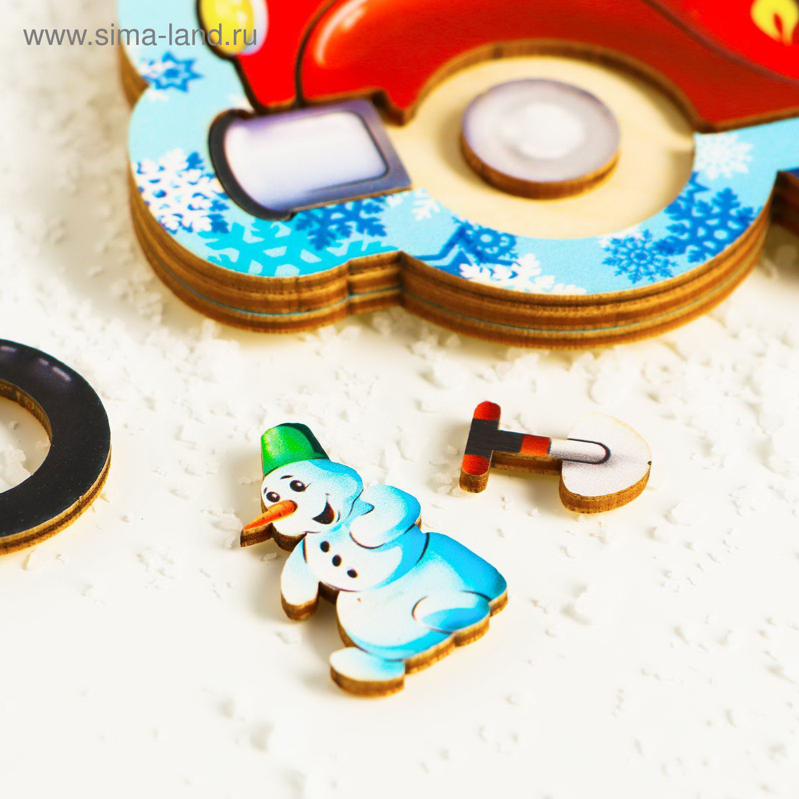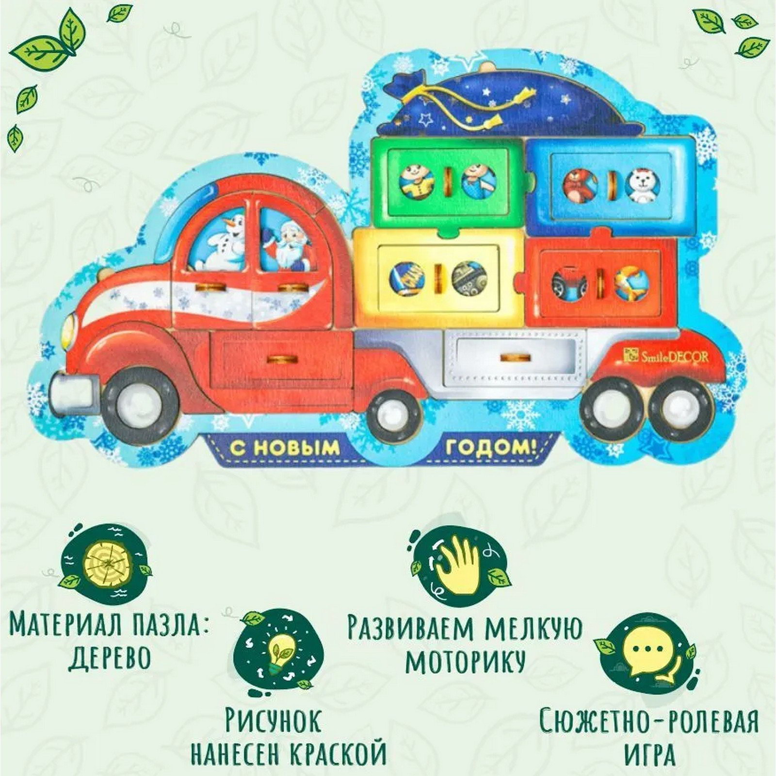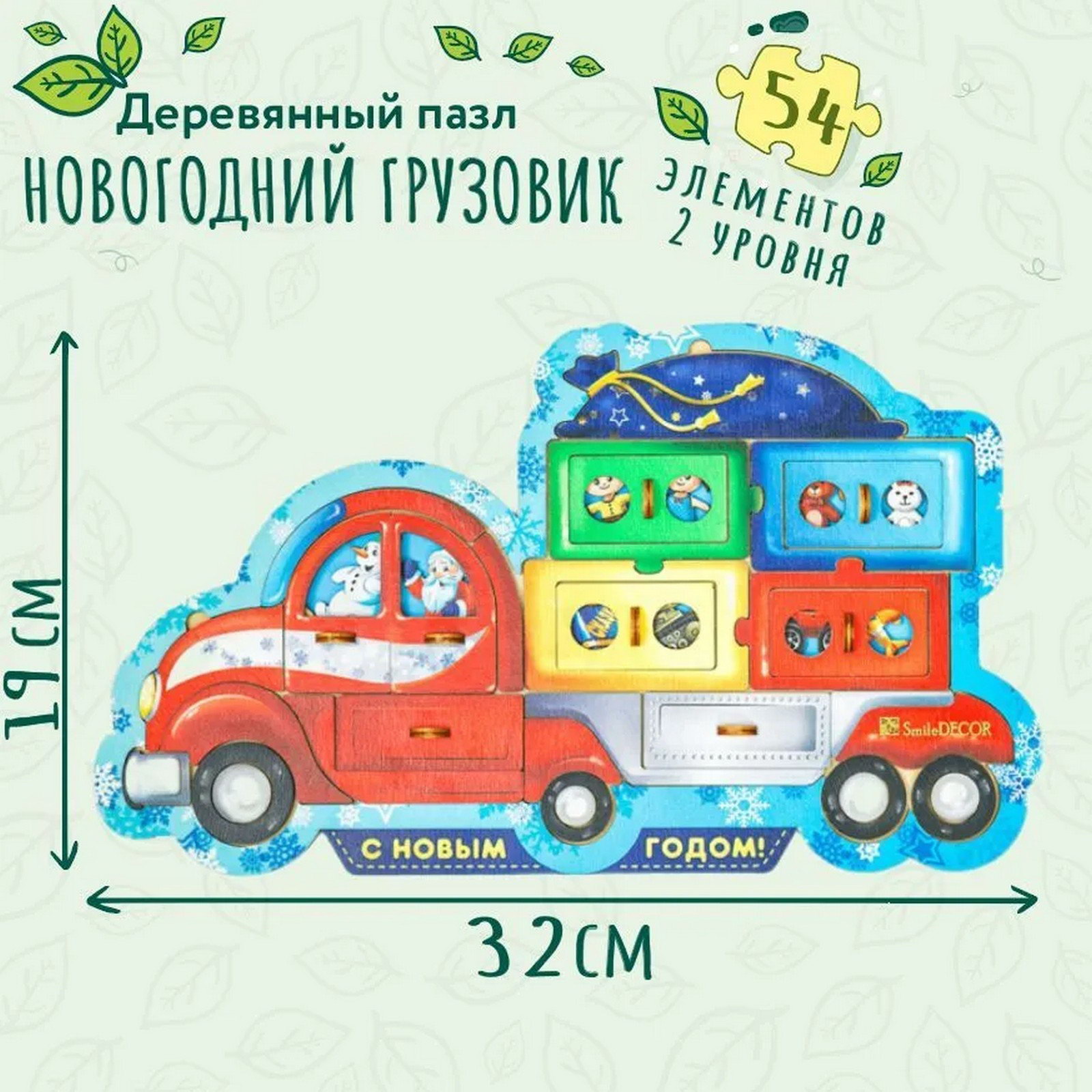 Пазл деревянный "Новогодний грузовик", 54 детали, Smile Decor, Россия