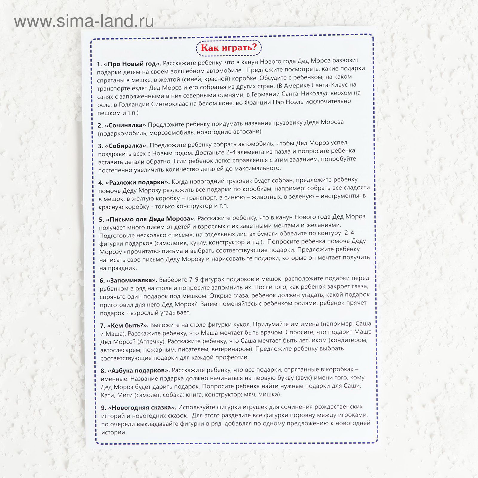 Возраст: Детский, От 3 лет Развитие навыков: Координация, Логика, Моторика Тематика: Новогодняя, Транспорт Тип пазлов: Пазлы в рамках, С фигурными элементами Размер упаковки: 19 x 1.5 x 32 см. Для кого: Для мальчика Для кого: Для мальчика tnved: 9503006000 Вид головоломки: Объёмные пазлы и фигуры Температурное ограничение: Нет Вид: Настольные Особенности: Без особенностей Форма: Фигурный Тематика праздника: Новый год Длина собранного пазла, см: 32 Ширина собранного пазла, см: 19 Количество элементов: 39 Пазл идеальный подарок как для ребёнка, так и для взрослого! Развивайте логику и воображение