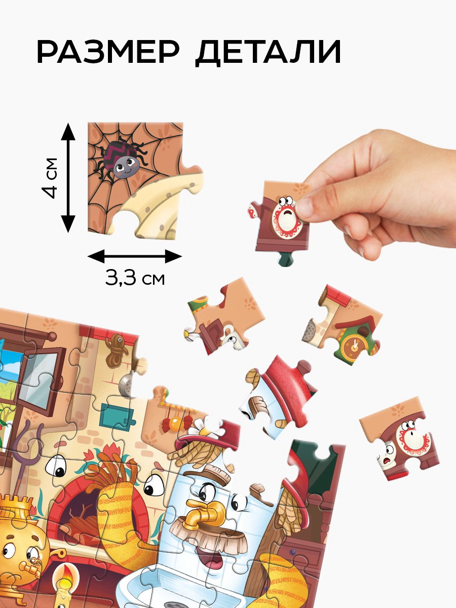 Этот пазл не только развлекает, но и помогает развивать важные навыки. Поиск нужных деталей тренирует внимание и кратковременную память, а соединение элементов укрепляет мелкую моторику рук. Яркие иллюстрации с героями сказки добавляют эмоциональный отклик и делают процесс ещё более увлекательным. Набор выполнен из безопасных материалов, что создаёт уверенность в его использовании для всей семьи. Польза собирания пазлов для детей:
