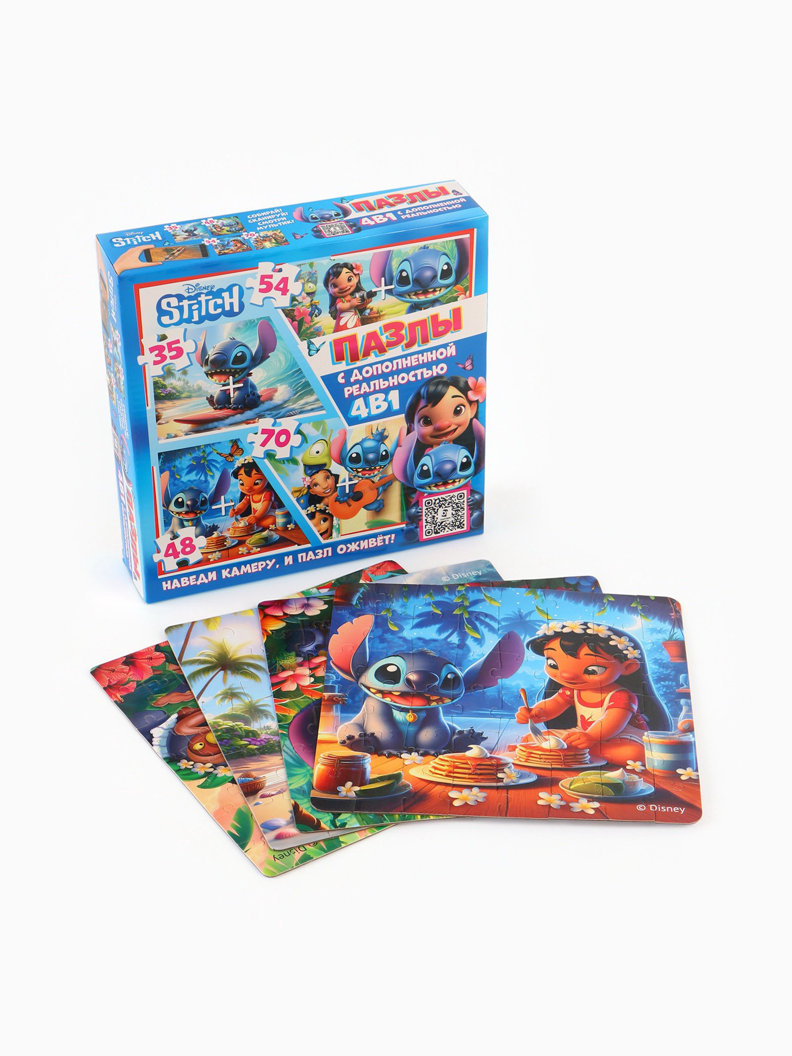 Пазлы 4 в 1 с дополненной реальностью, 35, 48, 54, 70 деталей, Стич, Disney, Китай