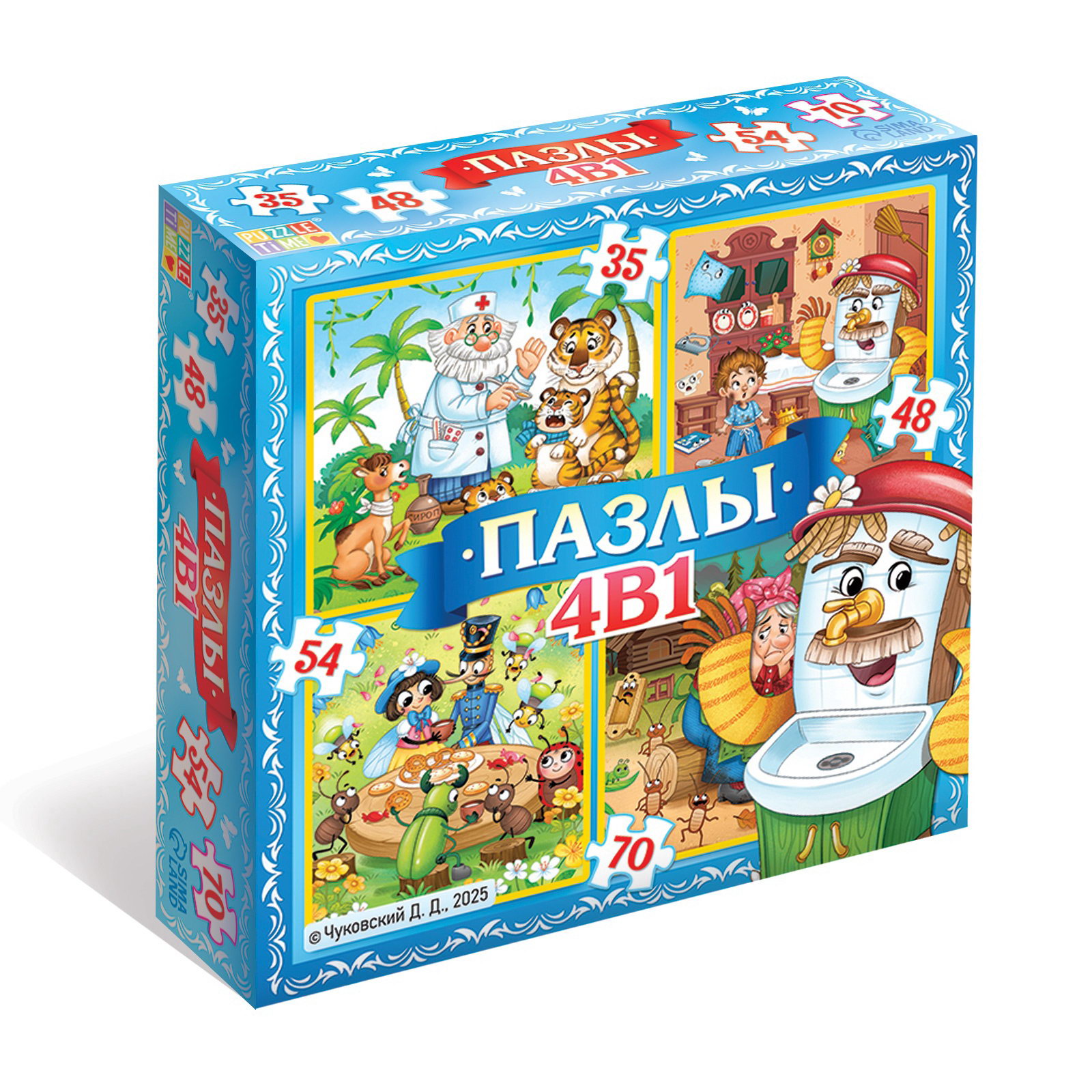 Пазлы 4 в 1 "Сказки Корнея Чуковского", Puzzle Time, Китай