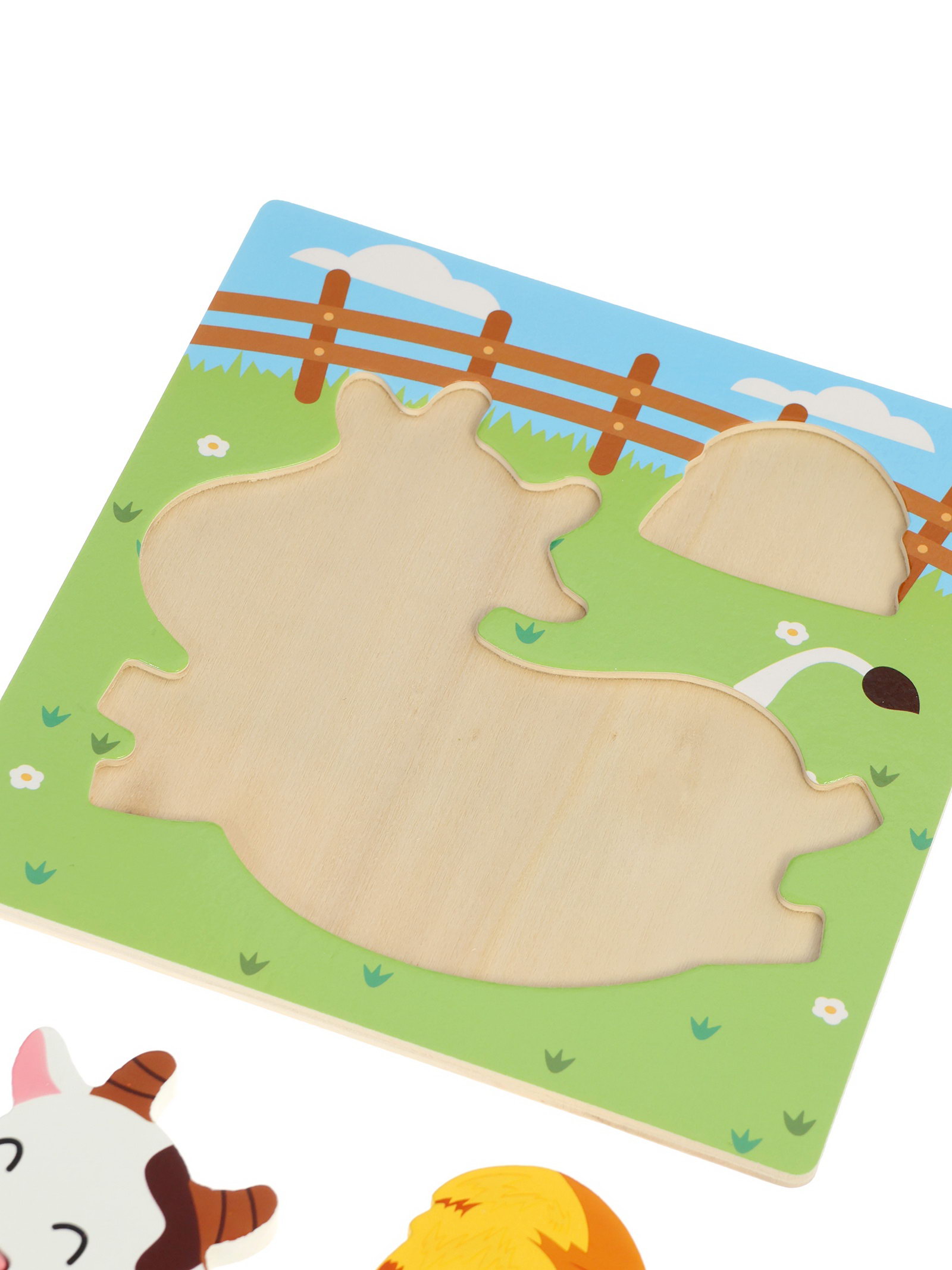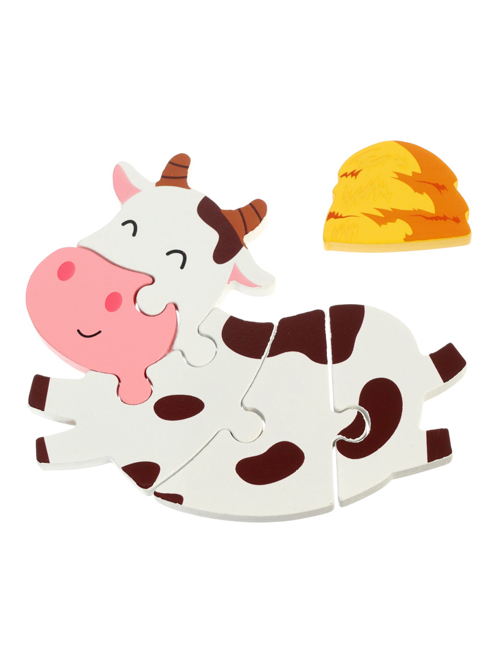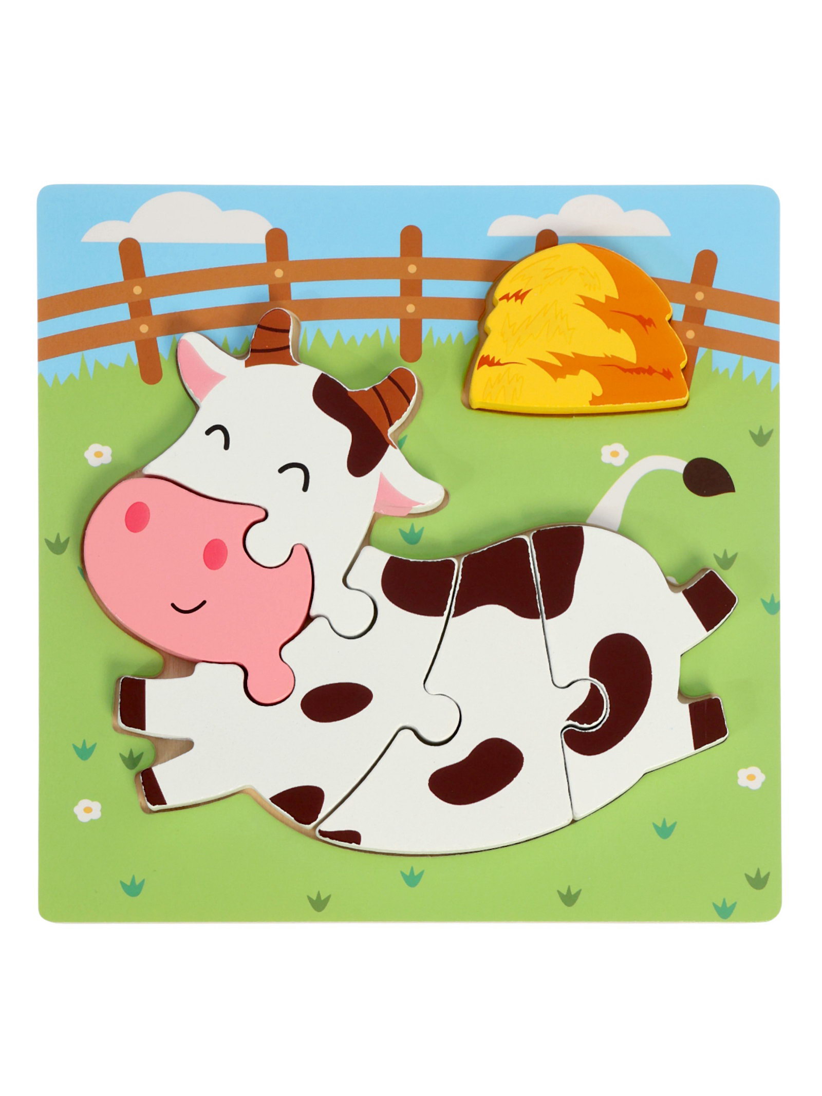 Развивающий деревянный Пазл "Коровка", 14.9x14.9x1.1 см., Китай