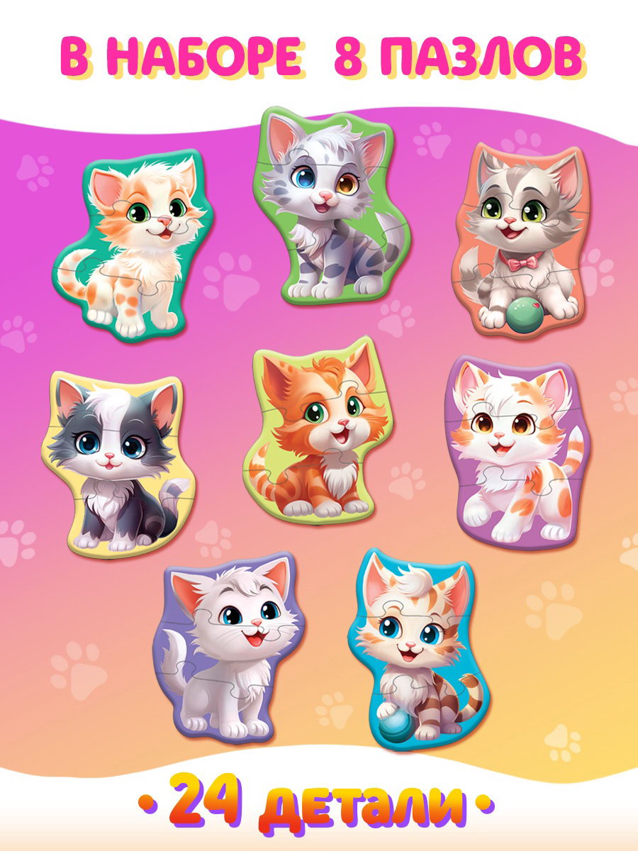 Макси - пазлы "Милые котики", 8 пазлов, 24 детали, 16x18x3 см., Puzzle Time, Китай
