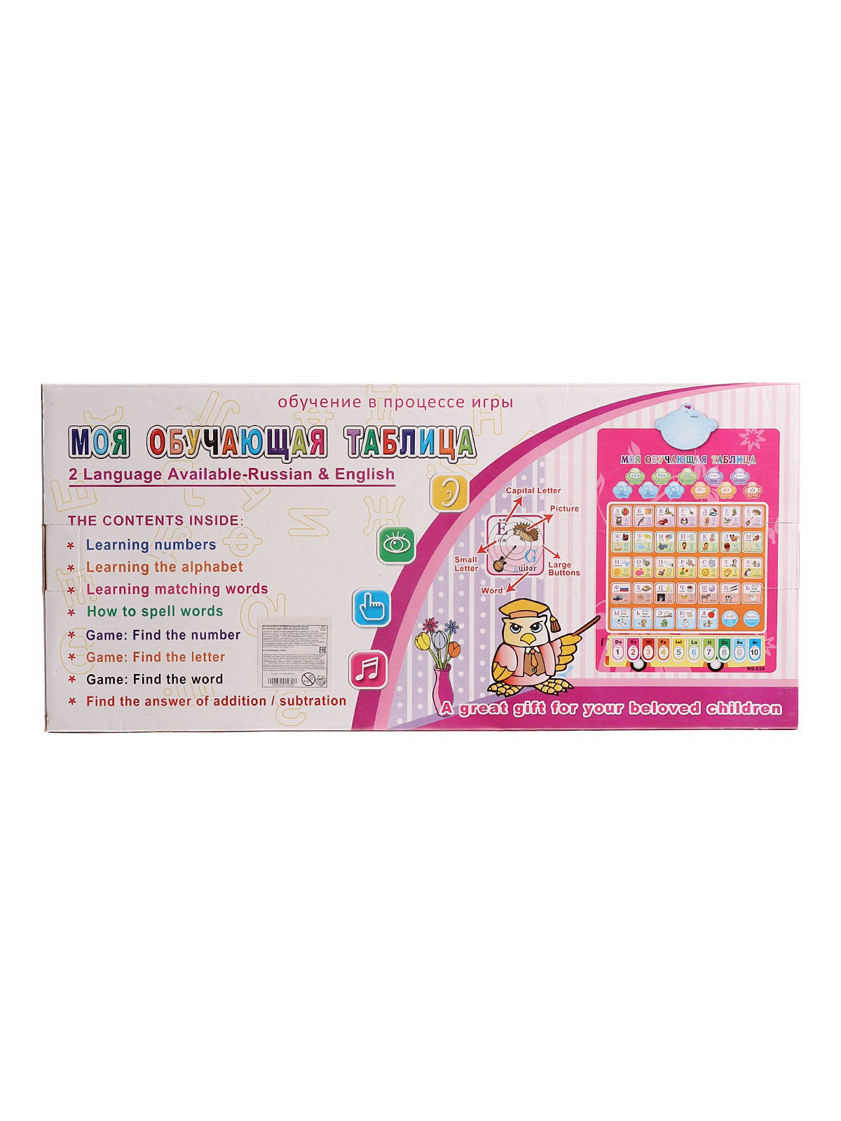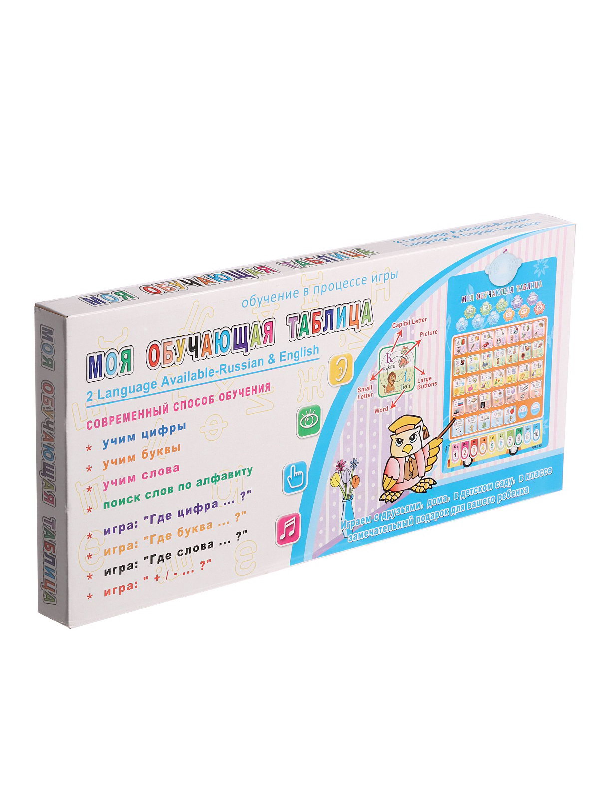 Обучающий плакат "Моя обучающая таблица", 8 режимов, 2 языка: русский и английский, голубой, 57x1.8x42 см., Китай