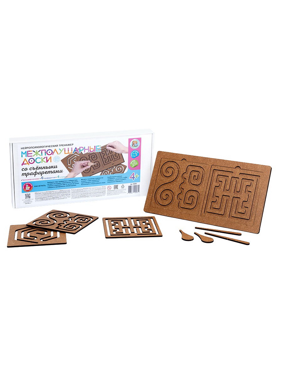 Игра развивающая "Межполушарные доски" со съёмными трафаретами, Десятое Королевство, Россия