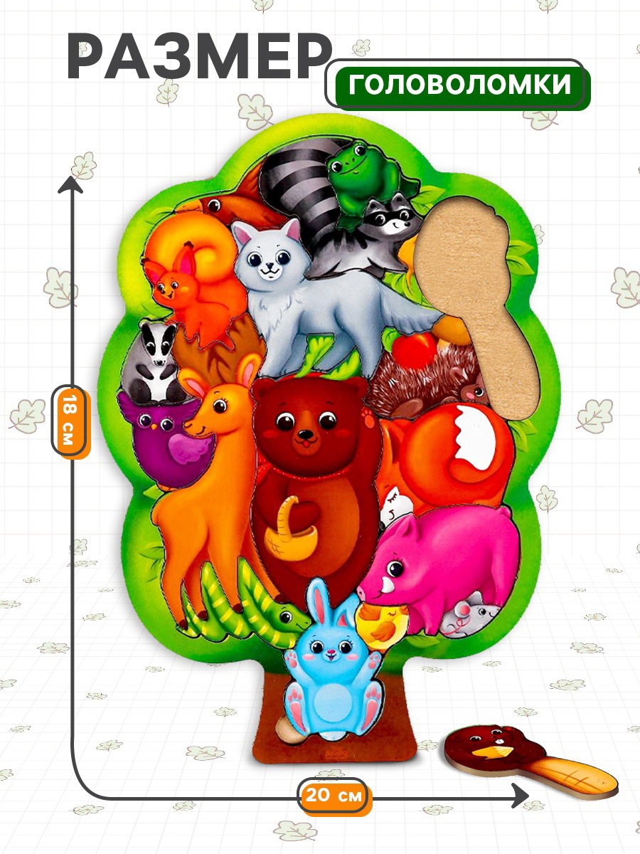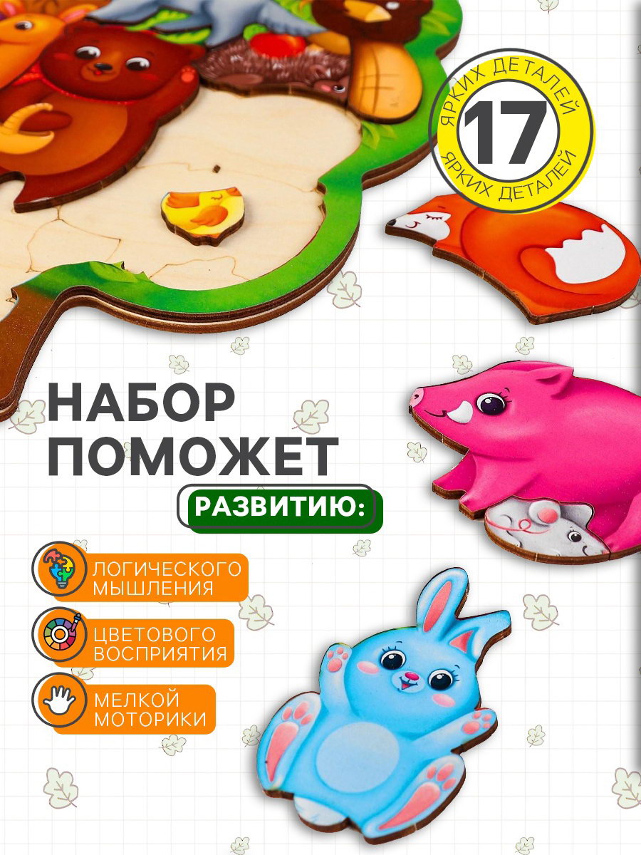 Головоломка "Лесные животные", 17 деталей, 28x20 см, Лесная мастерская, Россия