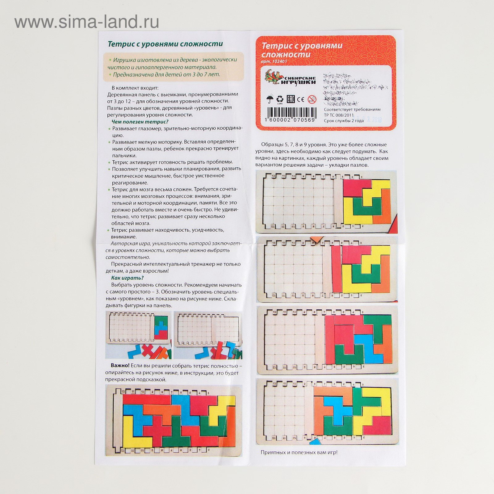 Головоломка-конструктор с уровнями сложности, СИБИРСКИЕ ИГРУШКИ, Россия