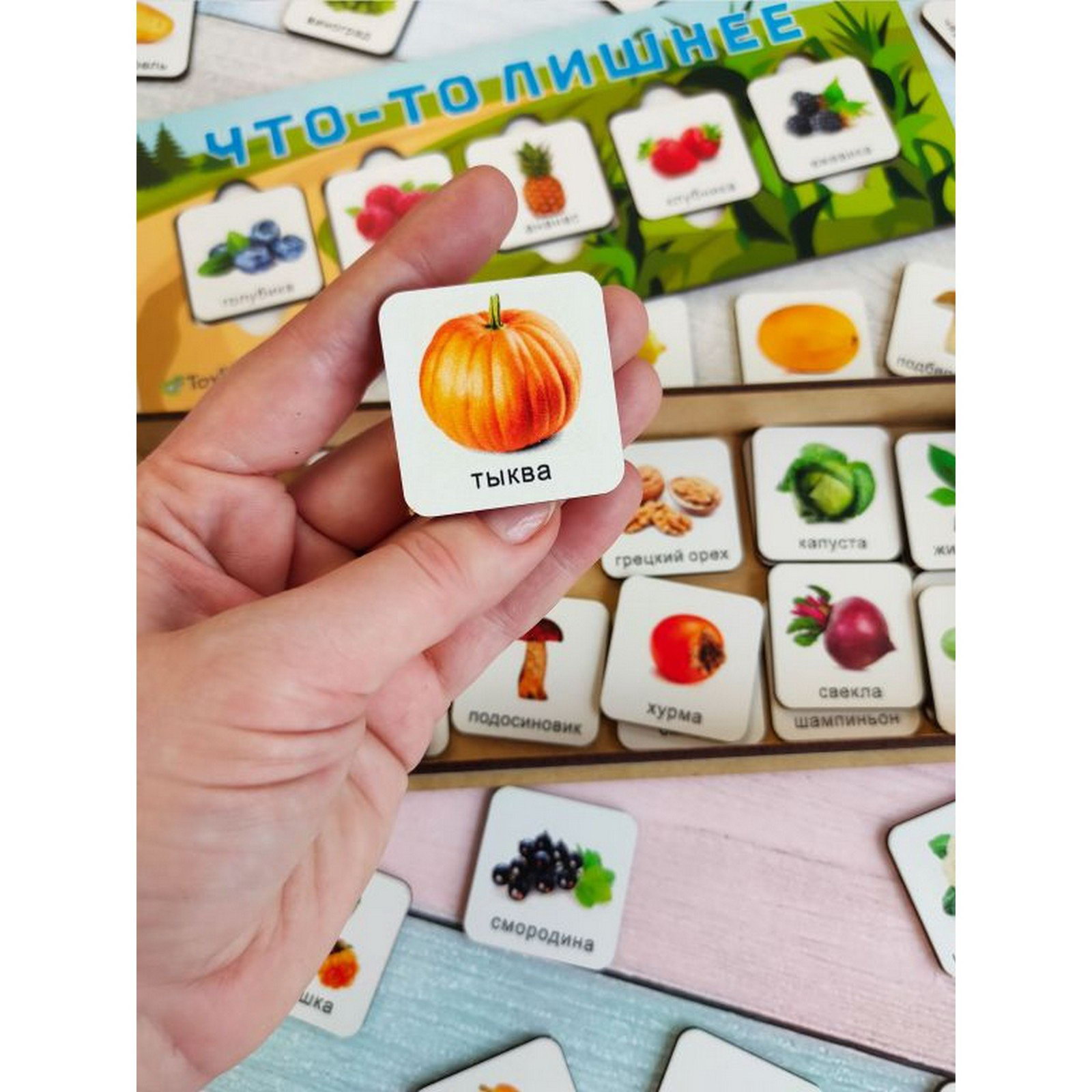 Размер упаковки: 10.5 x 3.5 x 27 см. Сложность головоломки: 4 tnved: 9503006000 Для кого: Унисекс Температурное ограничение: Нет Вид головоломки: Пазлы и мозаика Возраст: От 3 лет Увлекательная игра головоломка - логика "Что-то лишнее" познакомит ребёнка с овощами, фруктами, орехами, ягодами и грибами; научит сопоставлять, сравнивать, сортировать по разным признакам: типу, цвету, форме, вкусу и т.д. Что развивает