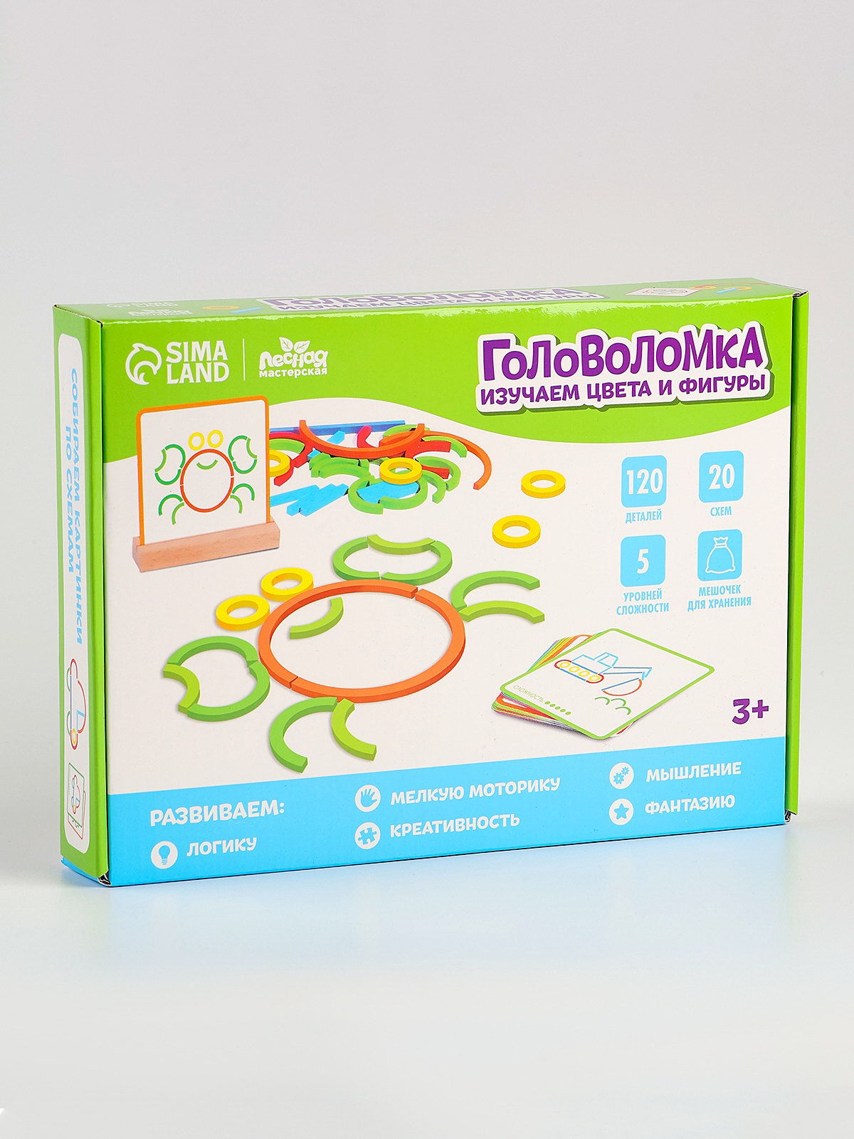 Сложность головоломки: 1, 2, 3, 4, 5 Размер упаковки: 16.5 x 3.5 x 23 см. Возраст: От 3 лет Вид головоломки: Повтори по образцу Для кого: Унисекс tnved: 9503006000 tnved: 9503006000 Головоломка "Изучаем цвета и фигуры" это увлекательная развивающая игра для детей от 3 лет. Она помогает малышам познавать мир через игру, развивая логику, внимание и творческое мышление. В набор входит 120 деталей разного размера, 20 схем сборки и 5 уровней сложности, что делает игру интересной как для начинающих, так и для более опытных маленьких исследователей. Особенности