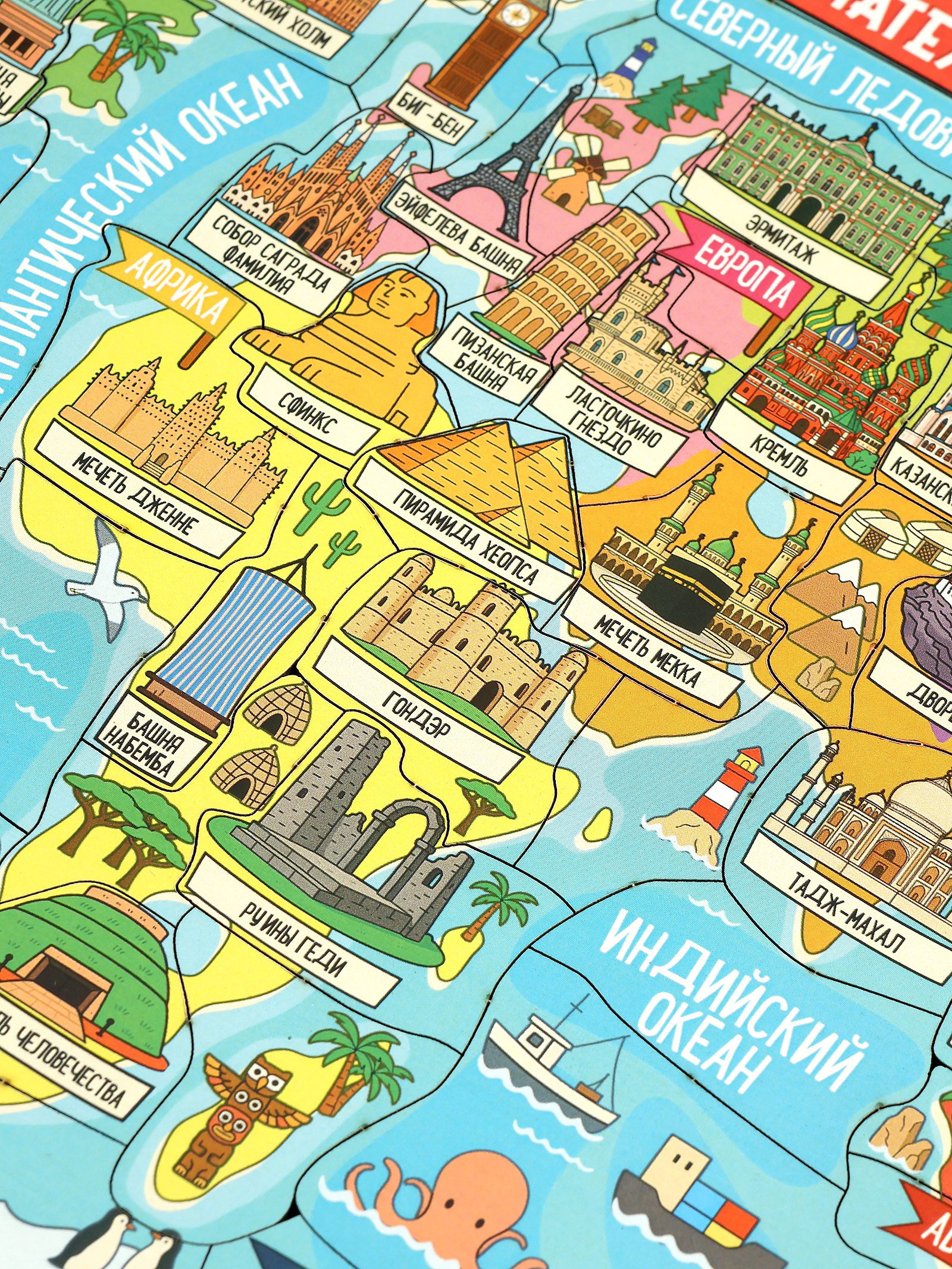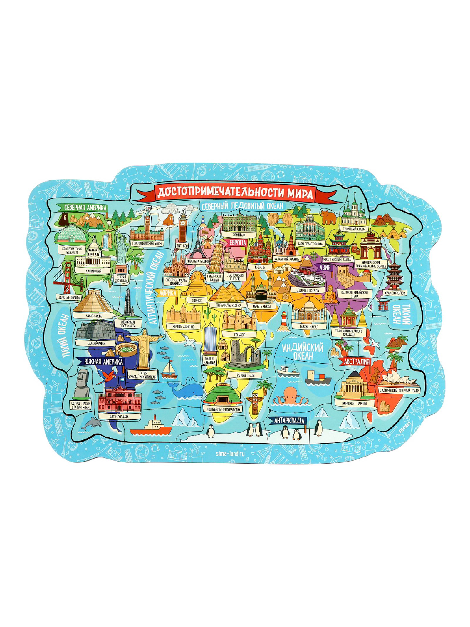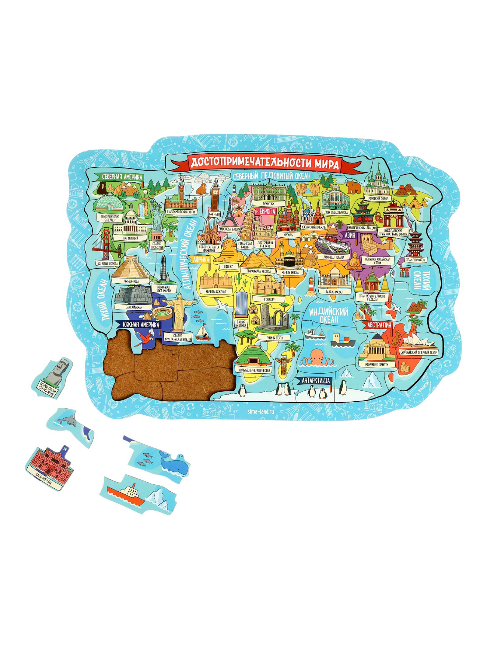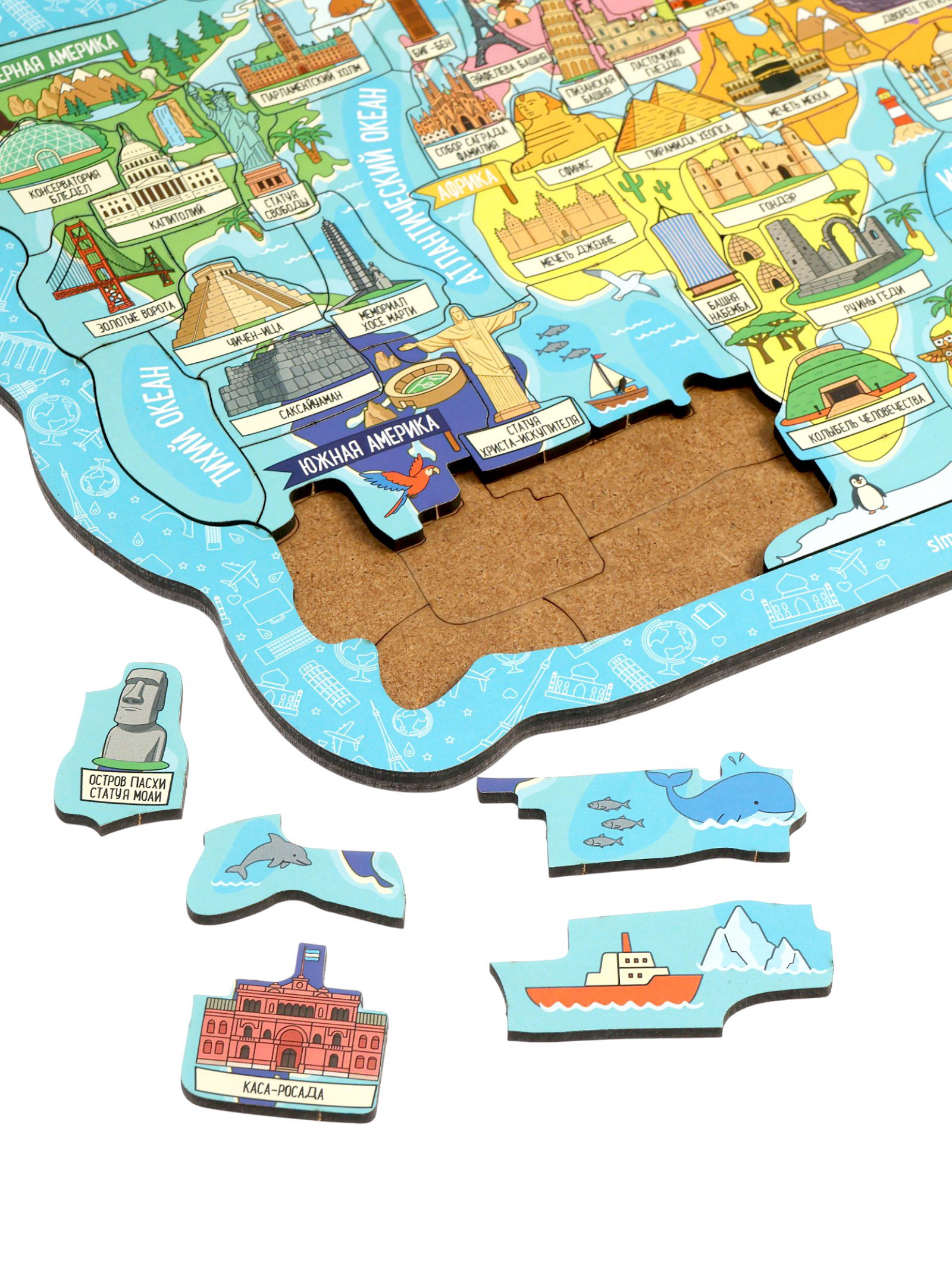 Пазл деревянный фигурный "Достопримечательности мира", 28.8x0.5x20.9 см., Лесная мастерская, Россия